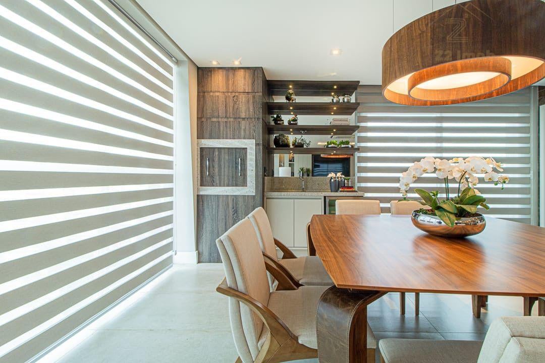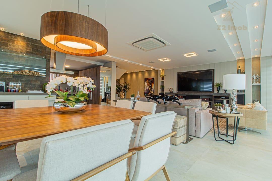 Amplo living integrado de 55m² para sala de estar, jantar e cozinha;