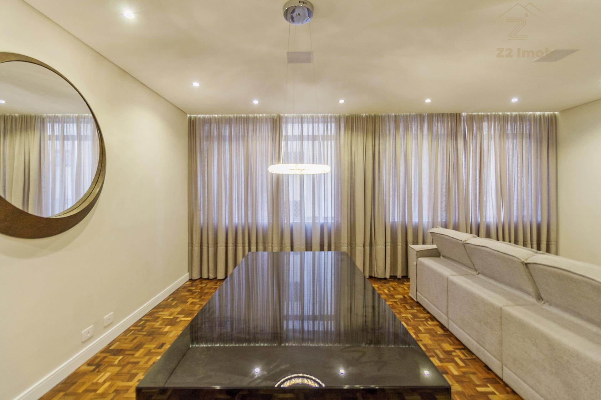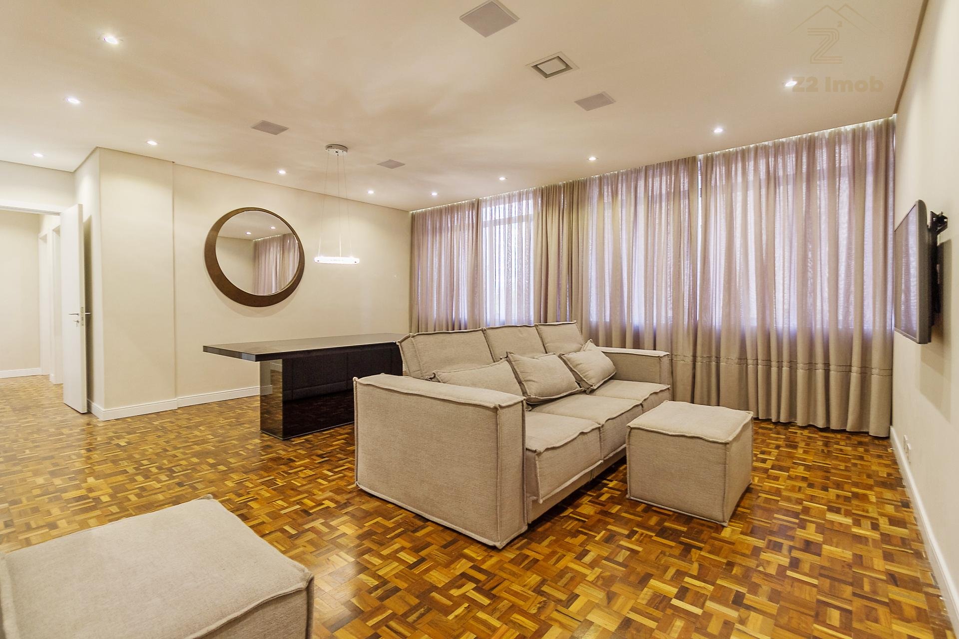 Apartamento reformado e mobiliado, em estilo retro-fit, localizado na Avenida Visconde de Guarapuava, no Batel. Fica a poucas quadras do Shopping Pátio Batel, Shopping Curitiba, Shopping Novo Batel e Shopping Crystal, próximo às ruas Coronel Dulcídio e Alferes Ângelo Sampaio.