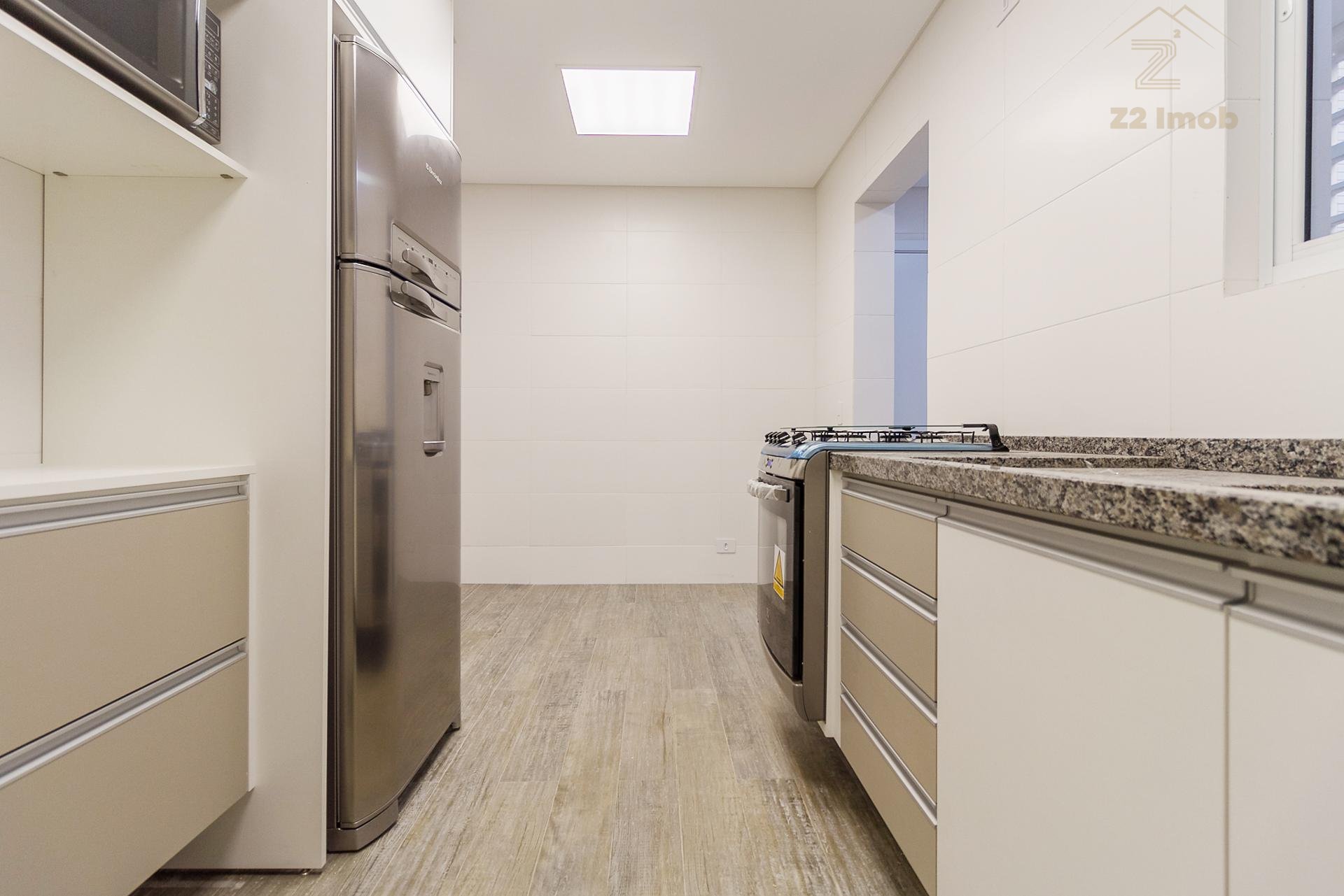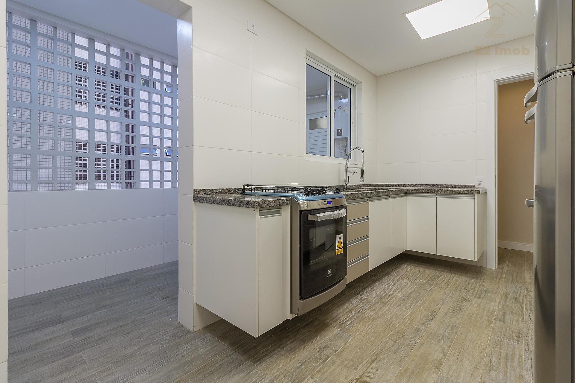 Com 101,42 m² de área privativa, o imóvel é bem ventilado e iluminado. Possui três quartos, sendo uma suíte com armários planejados, além de sala integrada, lavabo e cozinha equipada com armários.