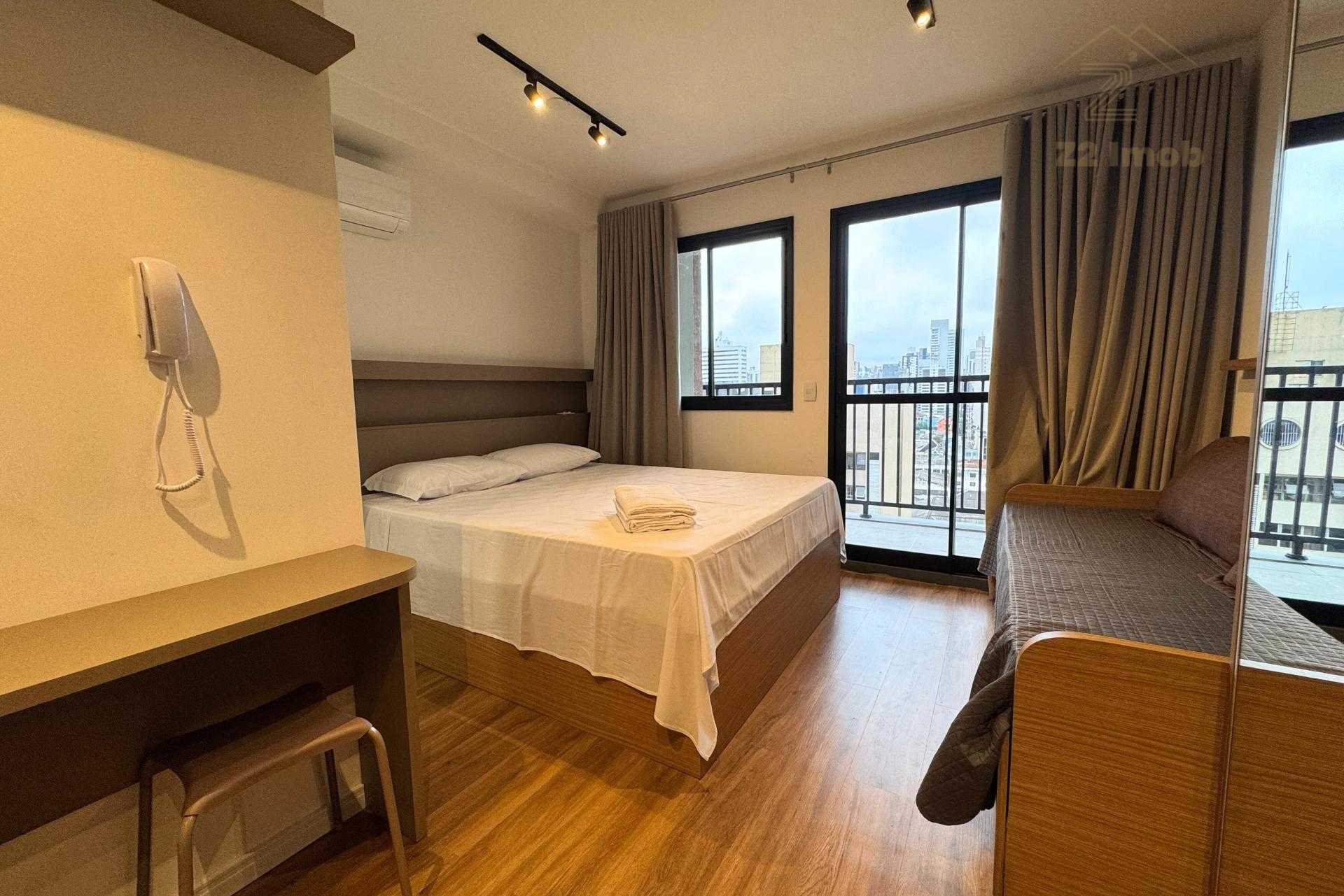 - Studio mobiliado, com móveis planejados e decoração contemporânea
