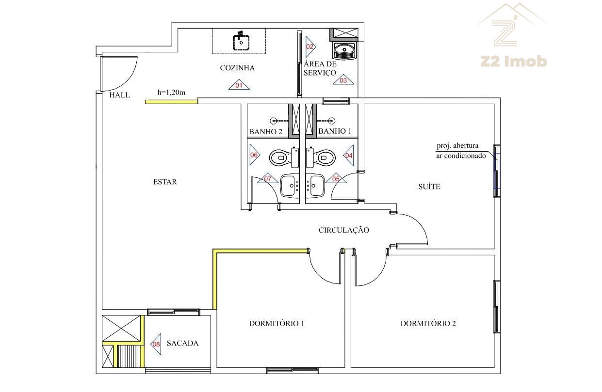 - Sala para 2 ambientes, com sacada e churrasqueira