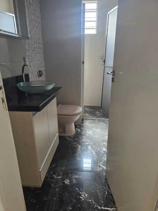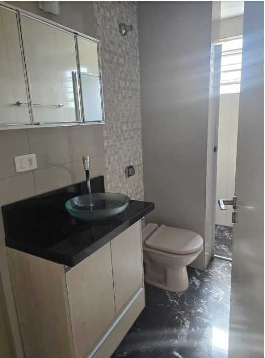 Banheiro com armário e box em vidro