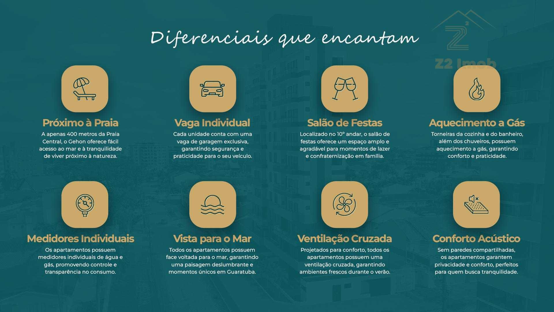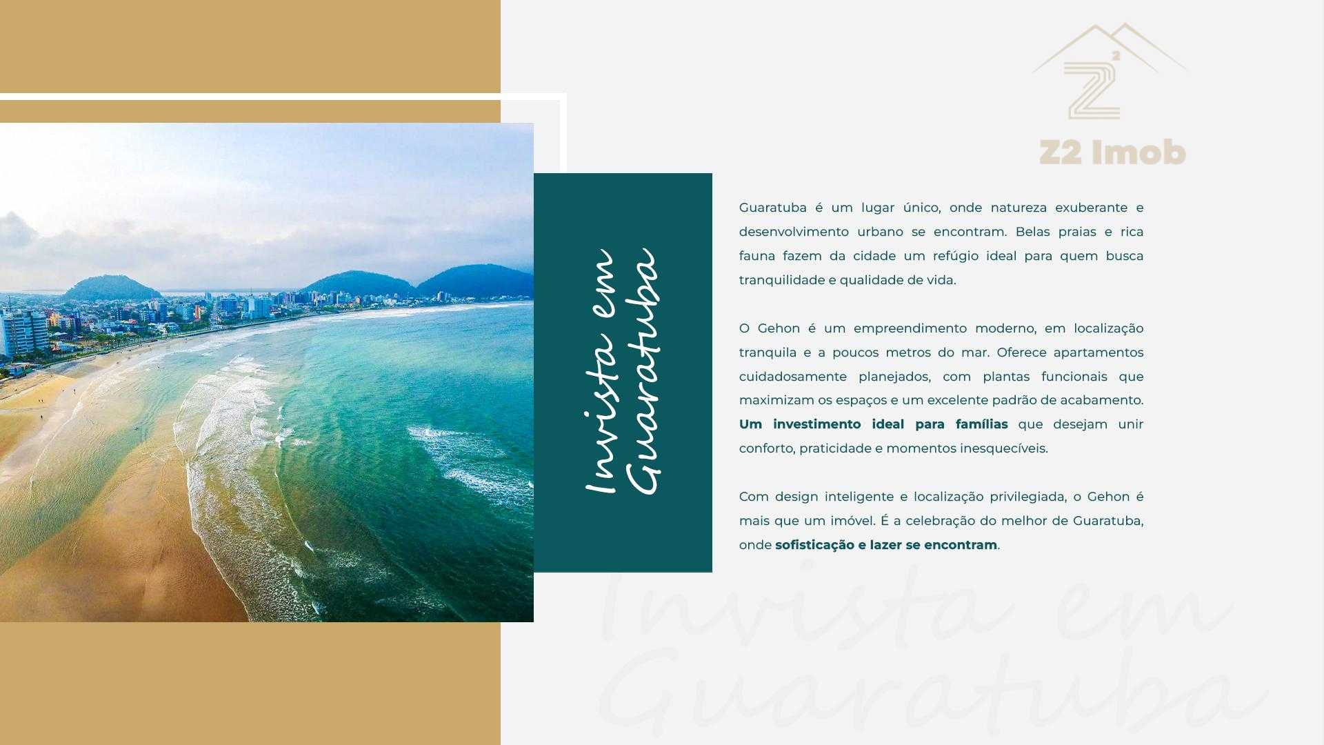 Um empreendimento moderno, em região tranquila e a apenas 400 metros da Praia Central. O apartamento tem planta funcional e alto padrão de acabamento, para quem busca conforto e praticidade no Centro de Guaratuba.