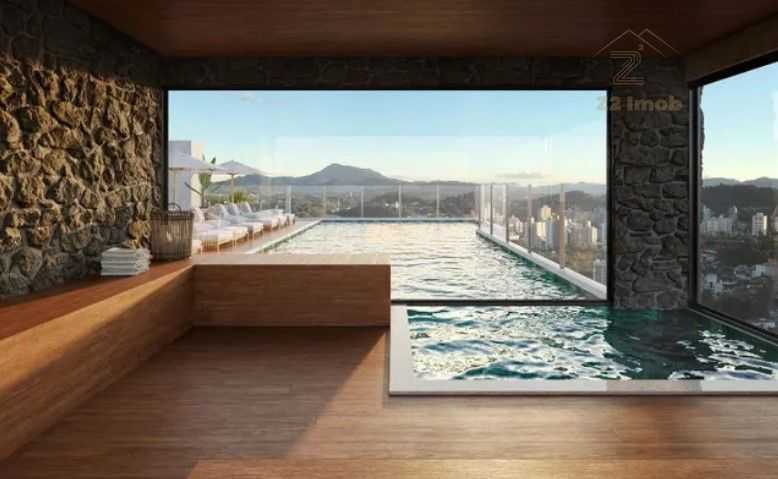 Piscina com borda infinita e sauna, oferecendo momentos de relaxamento e bem-estar.