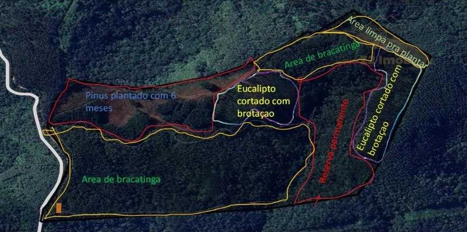 Plantação consolidada: O terreno conta com 7.000 pés de pinus e 16.000 pés de eucalipto, garantindo rendimento imediato e potencial de valorização a médio e longo prazo;