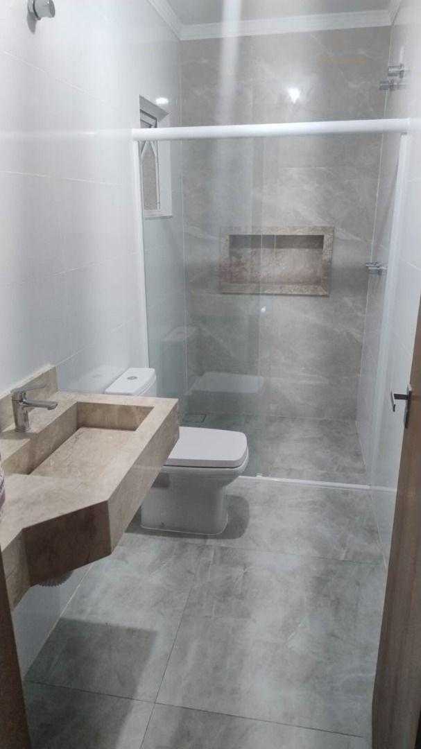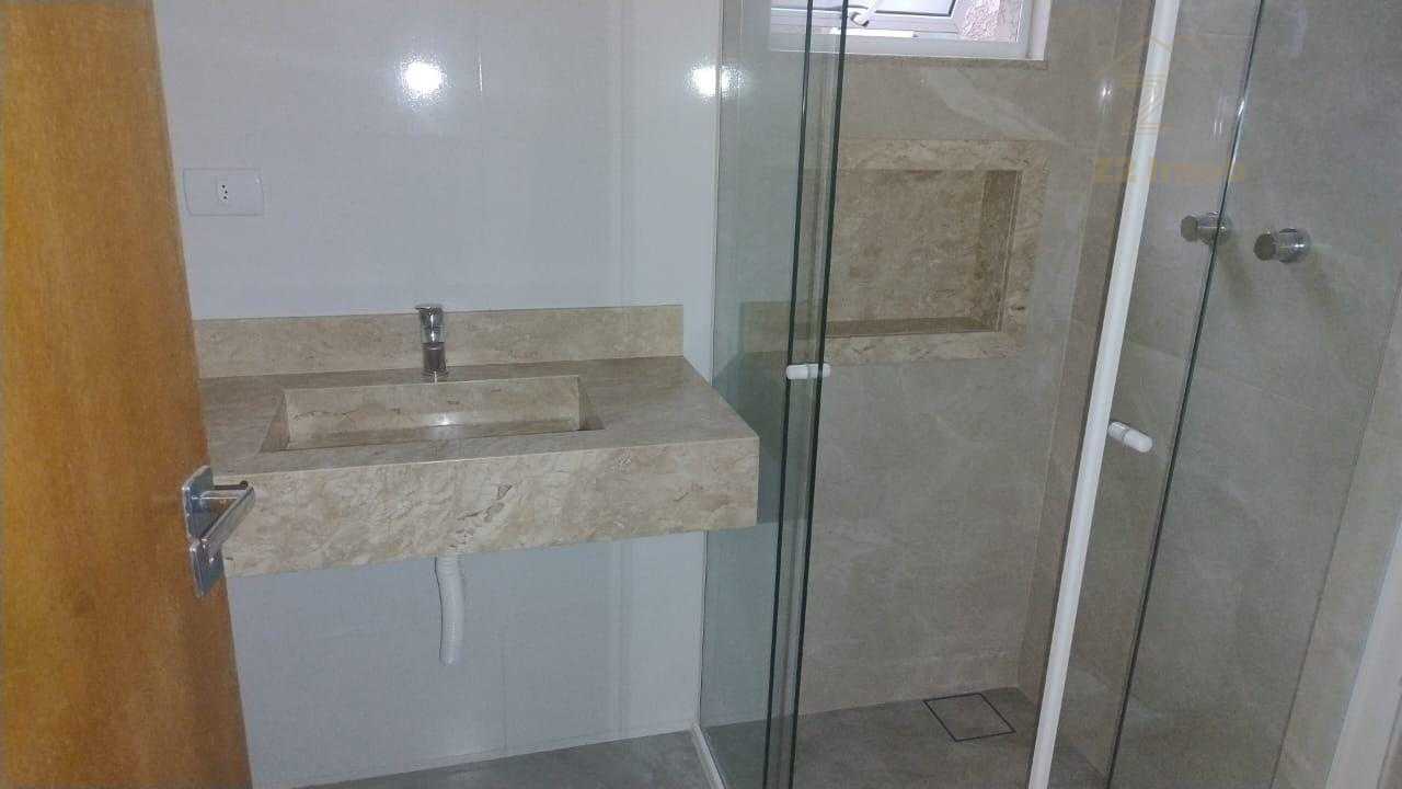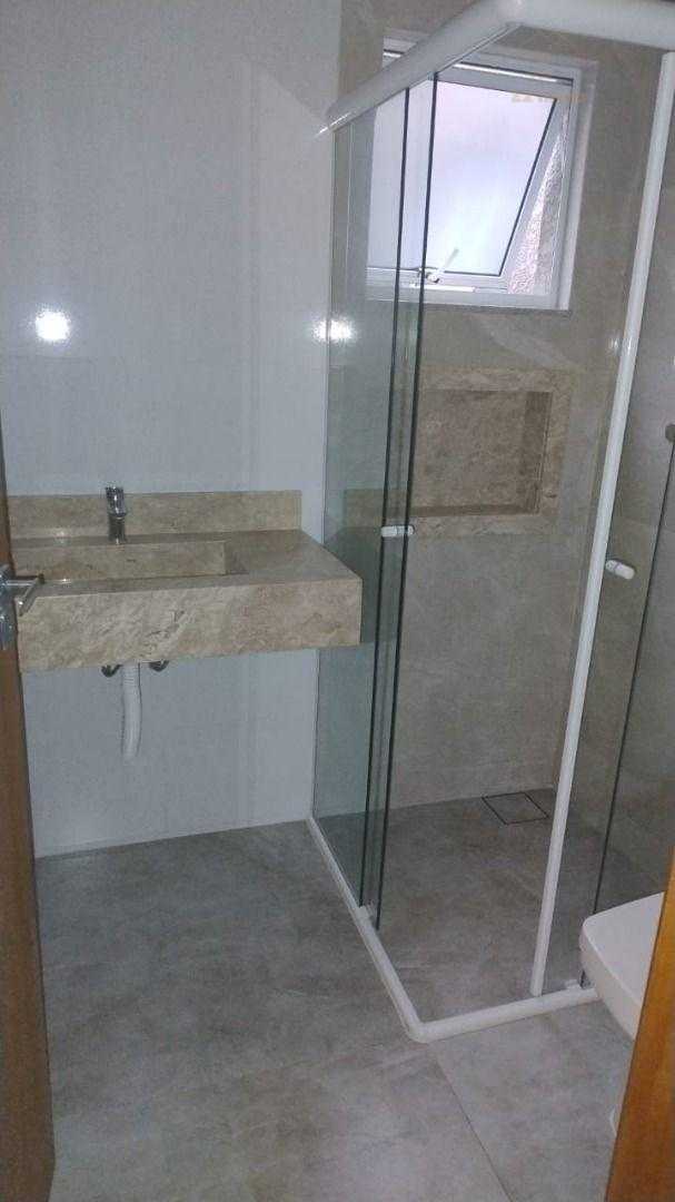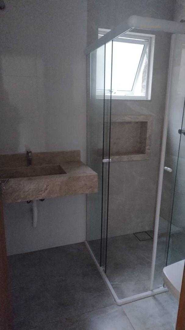 Banheiro social moderno, com espaço para instalação de armários e espelhos;