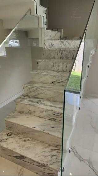 Escada em mármore e guarda-corpo em vidro