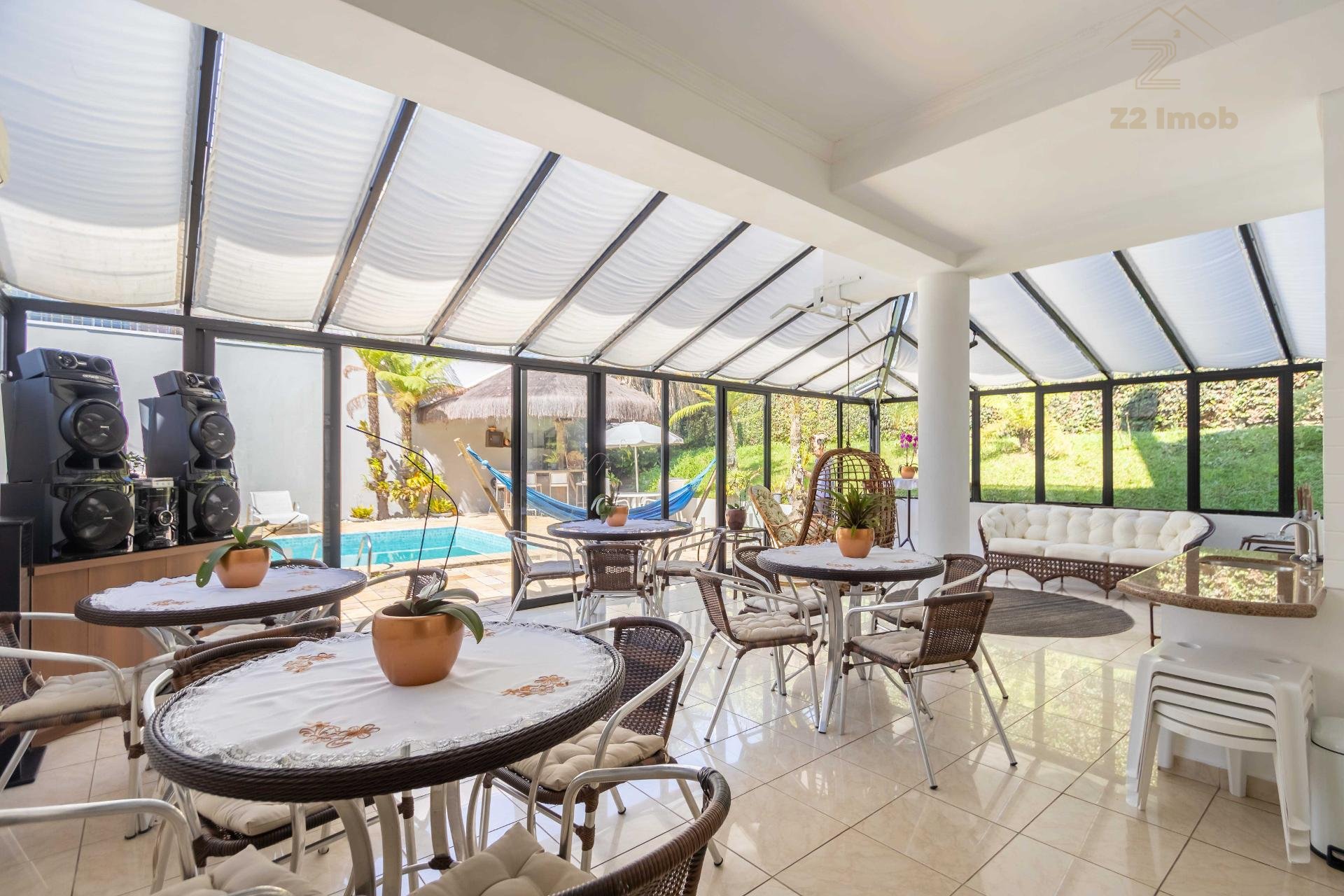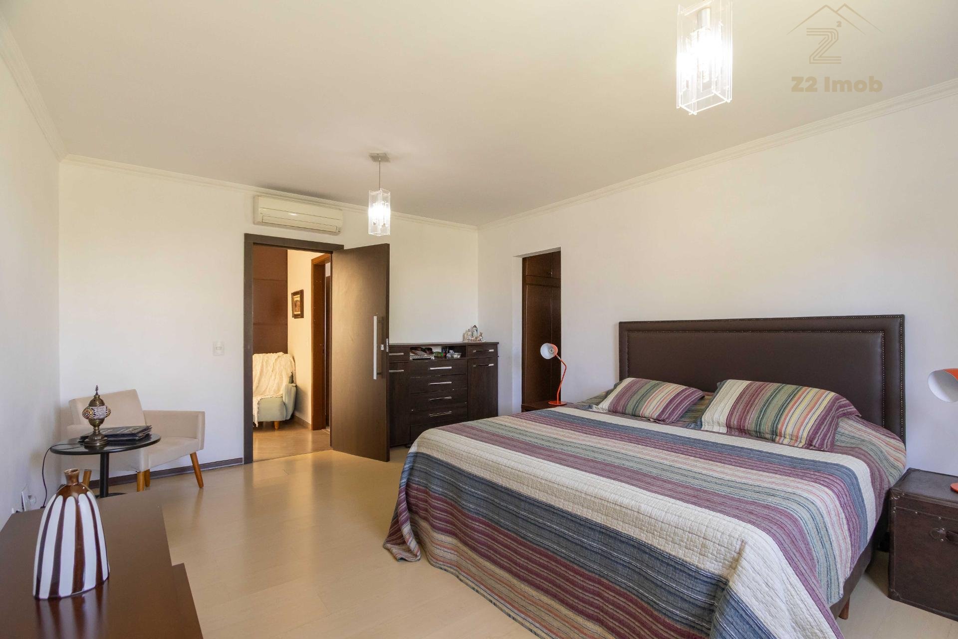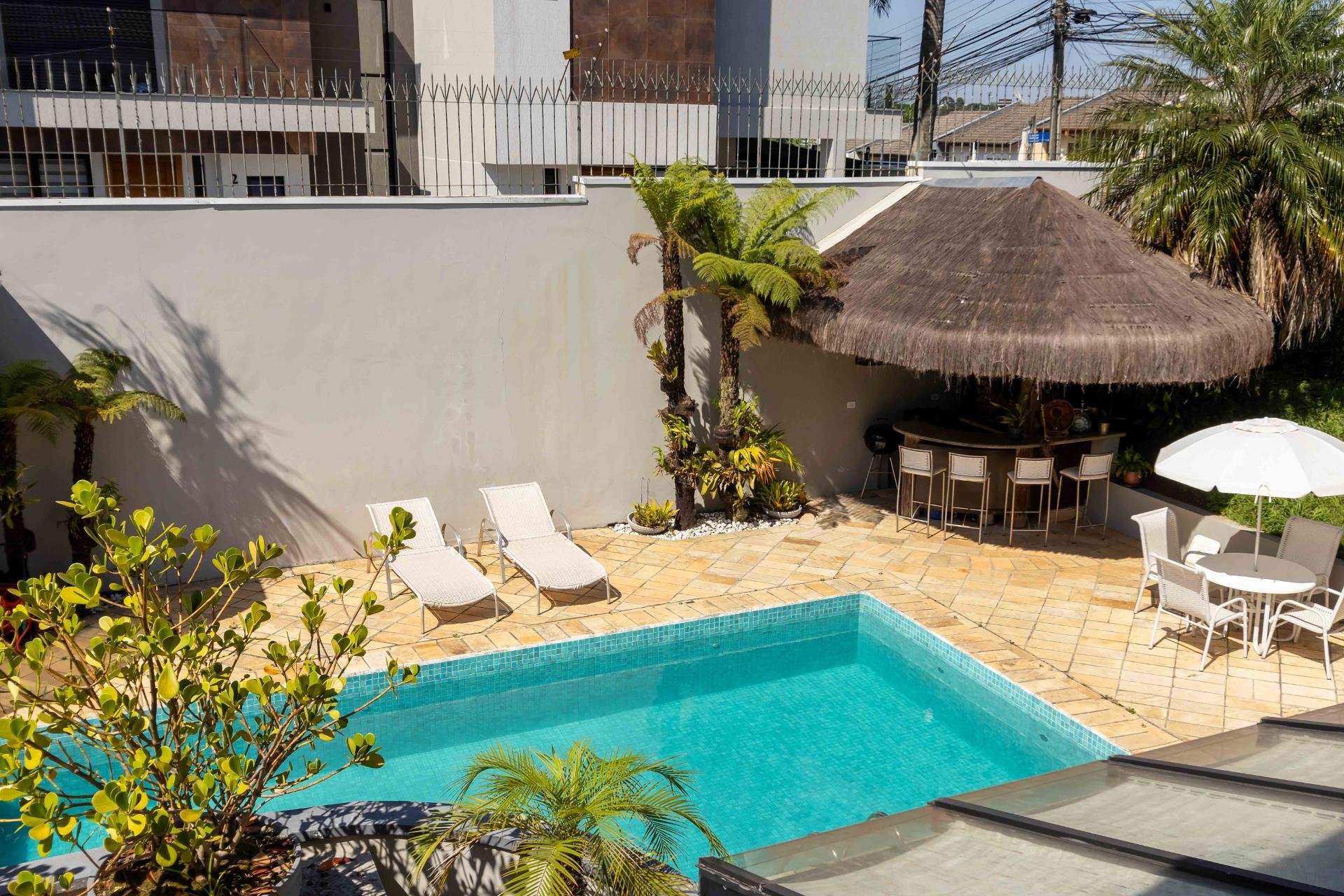 A residência conta ainda com 5 banheiros, 4 vagas de garagem, vestiário completo com chuveiro para atender com praticidade momentos de lazer e piscina, além de acabamentos de altíssimo padrão incluindo pisos de porcelanato premium, esquadrias amplas e infraestrutura pronta para climatização e automação residencial.