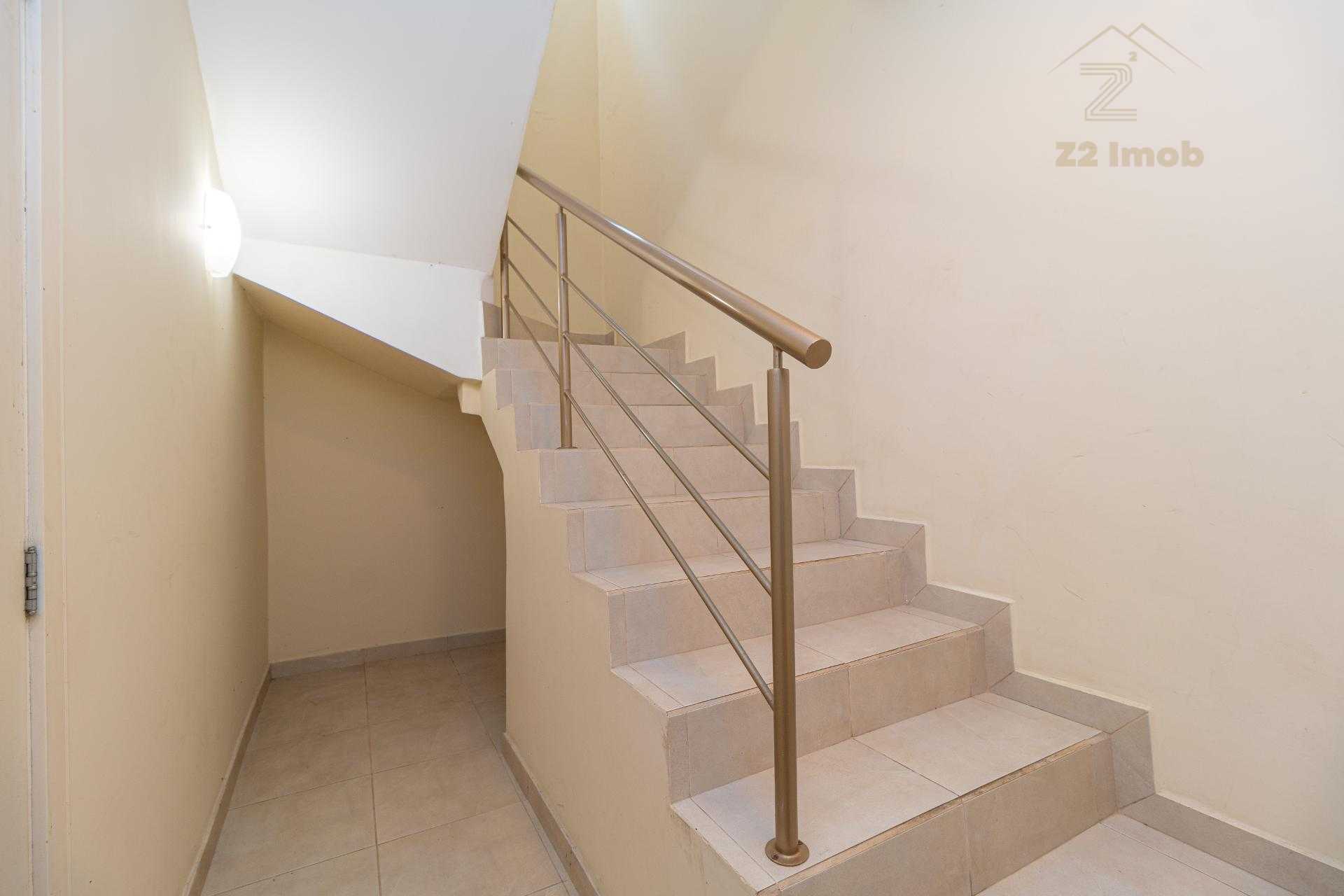 À esquerda, uma escada elegante e bem desenhada conduz aos pavimentos superiores, valorizando o projeto arquitetônico e criando um impacto visual sofisticado logo na entrada.