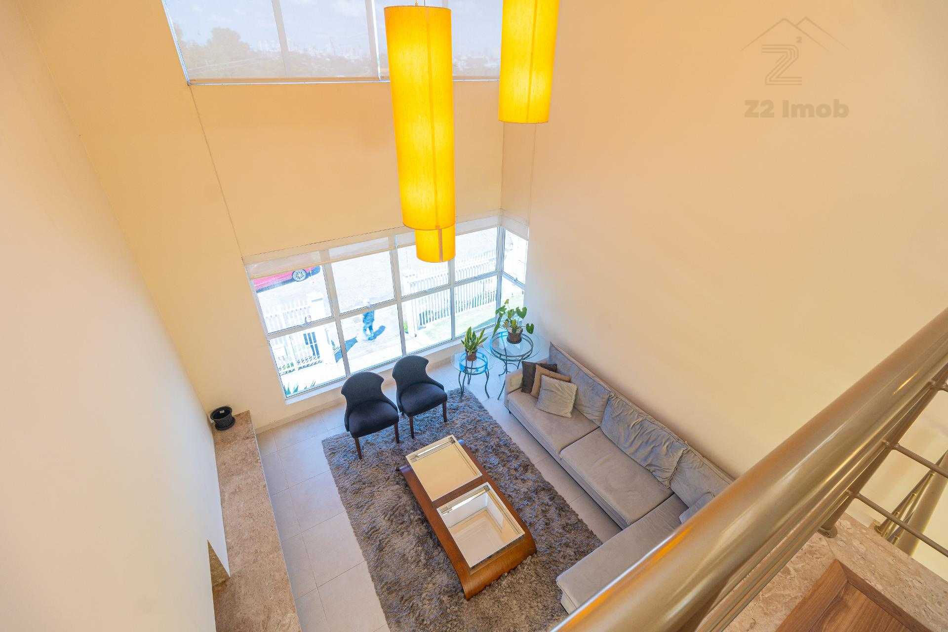 A área social impressiona pelo pé-direito alto, que amplia a sensação de espaço e proporciona luminosidade abundante.