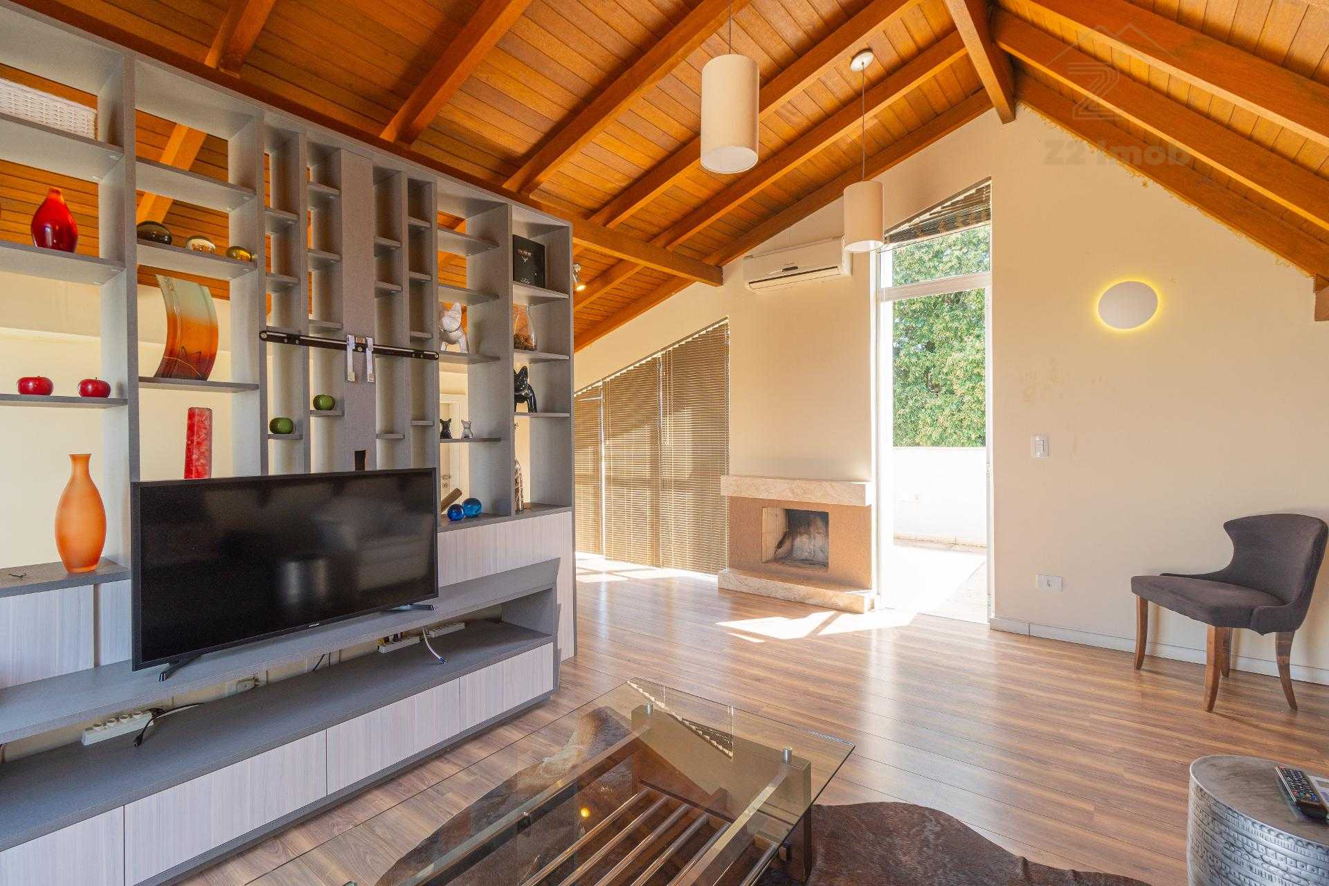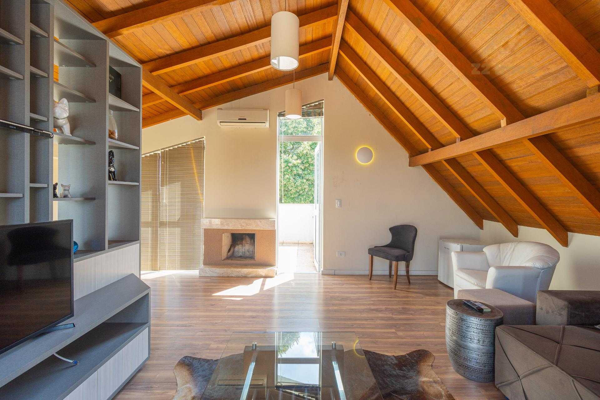 O ático é amplo, climatizado, possui lareira e sacada com linda vista. Um espaço extremamente versátil que pode ser utilizado como: