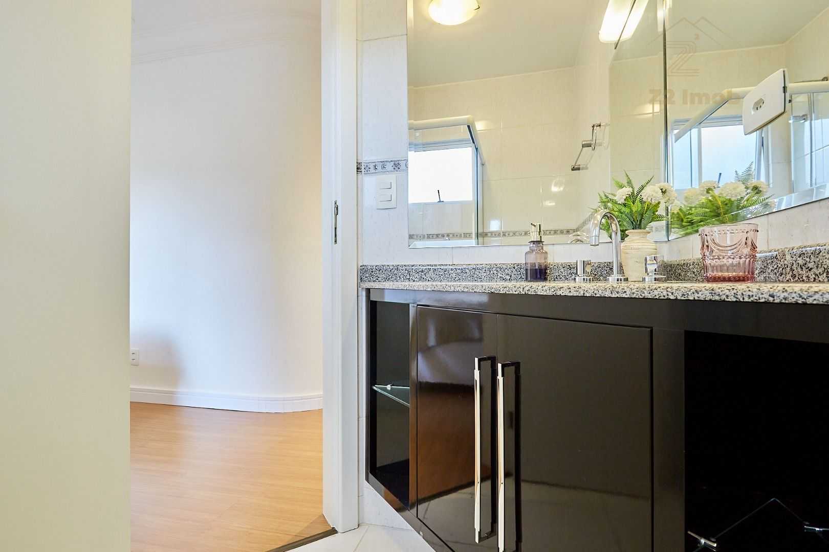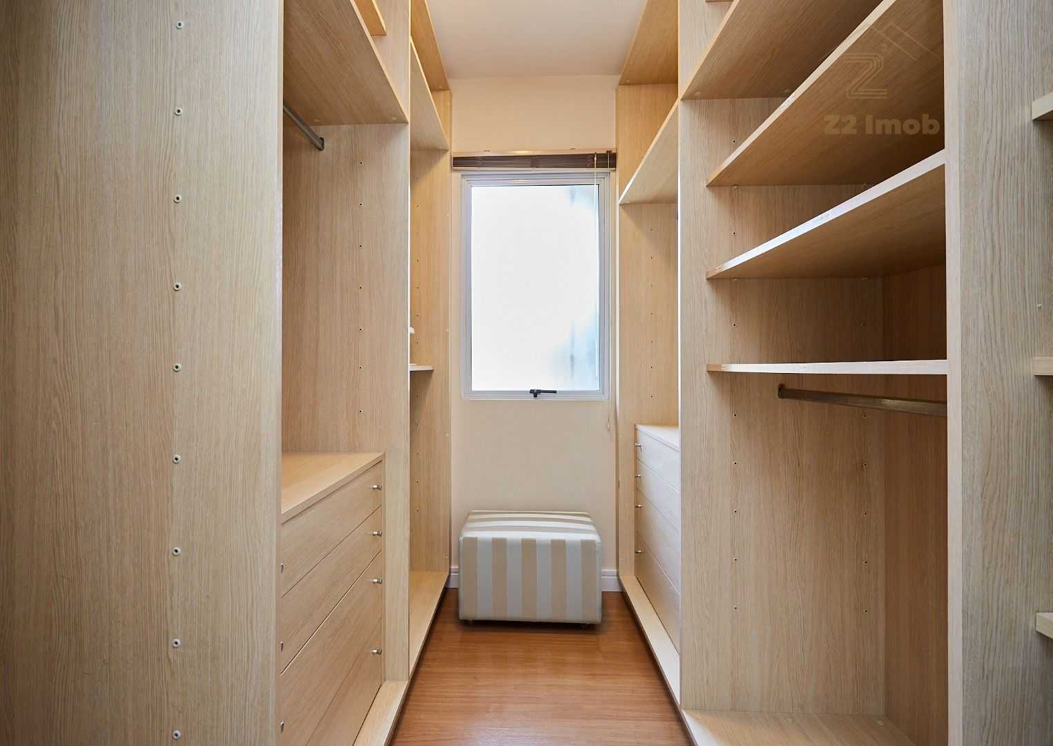 Suíte master exclusiva: amplo closet, banheiro com hidromassagem e bancada com cubas duplas.