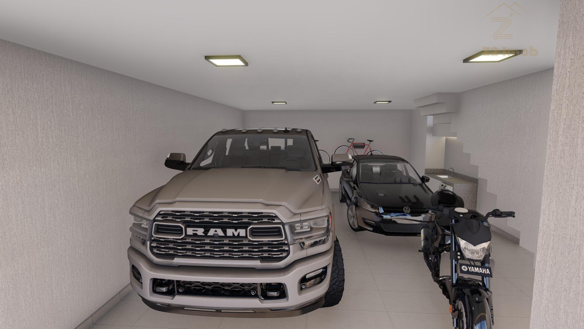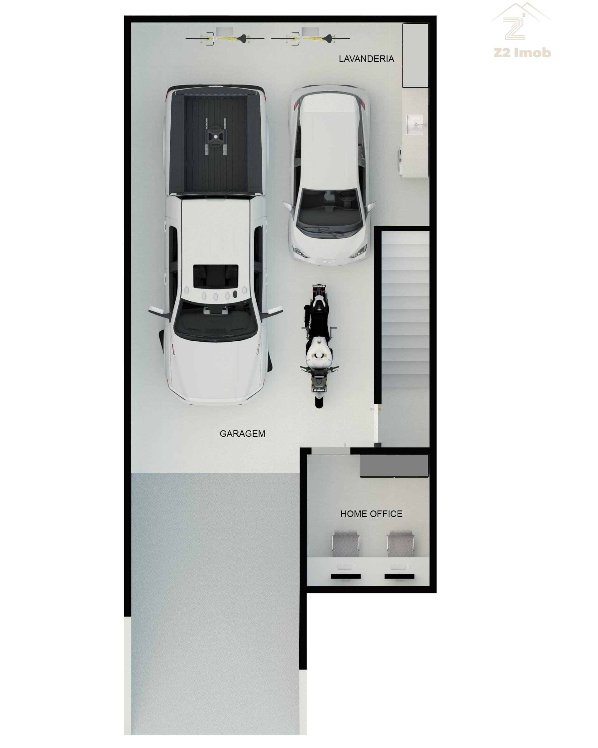 Subsolo com ampla garagem para 2 carros cobertos e uma moto e mais a lavanderia.