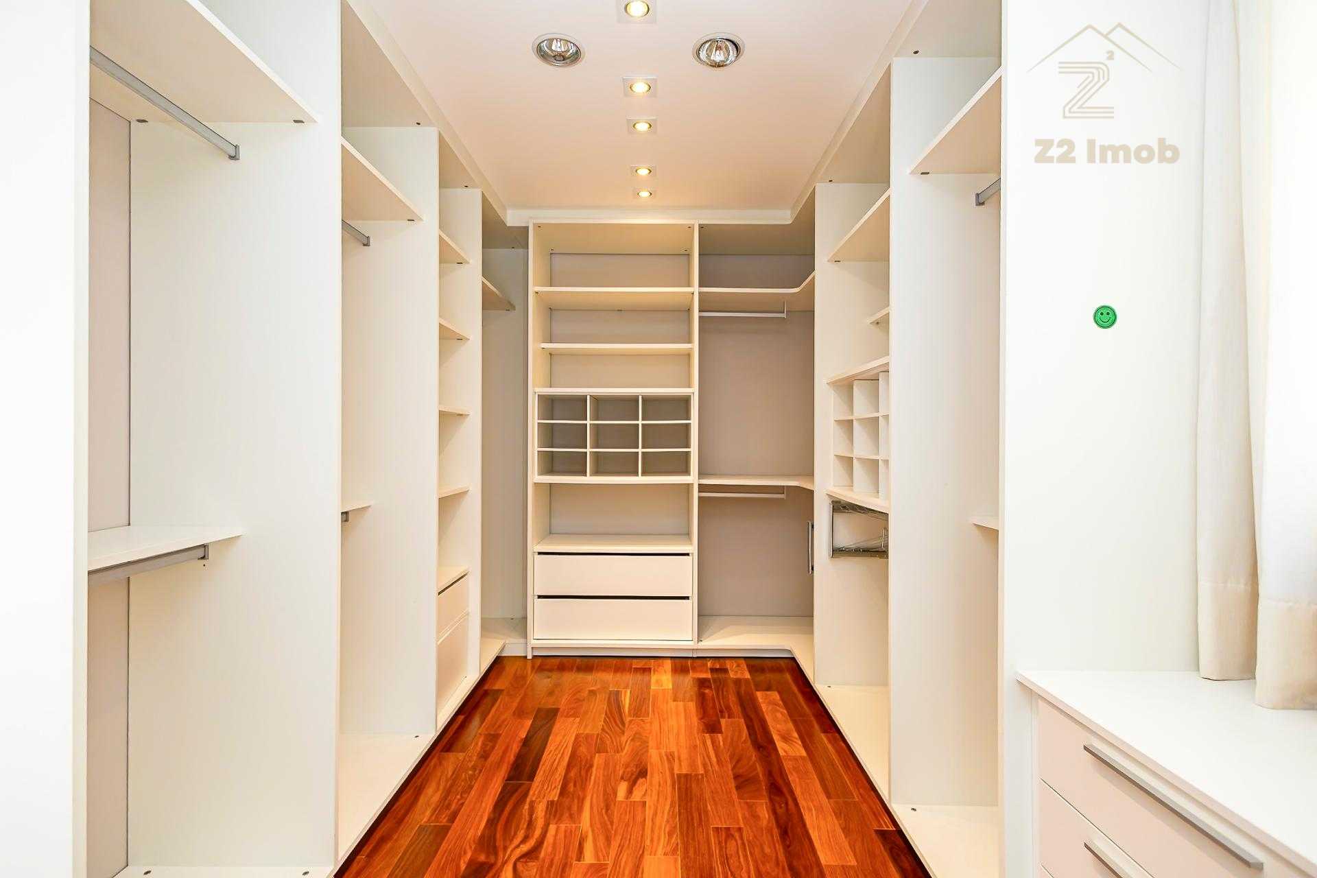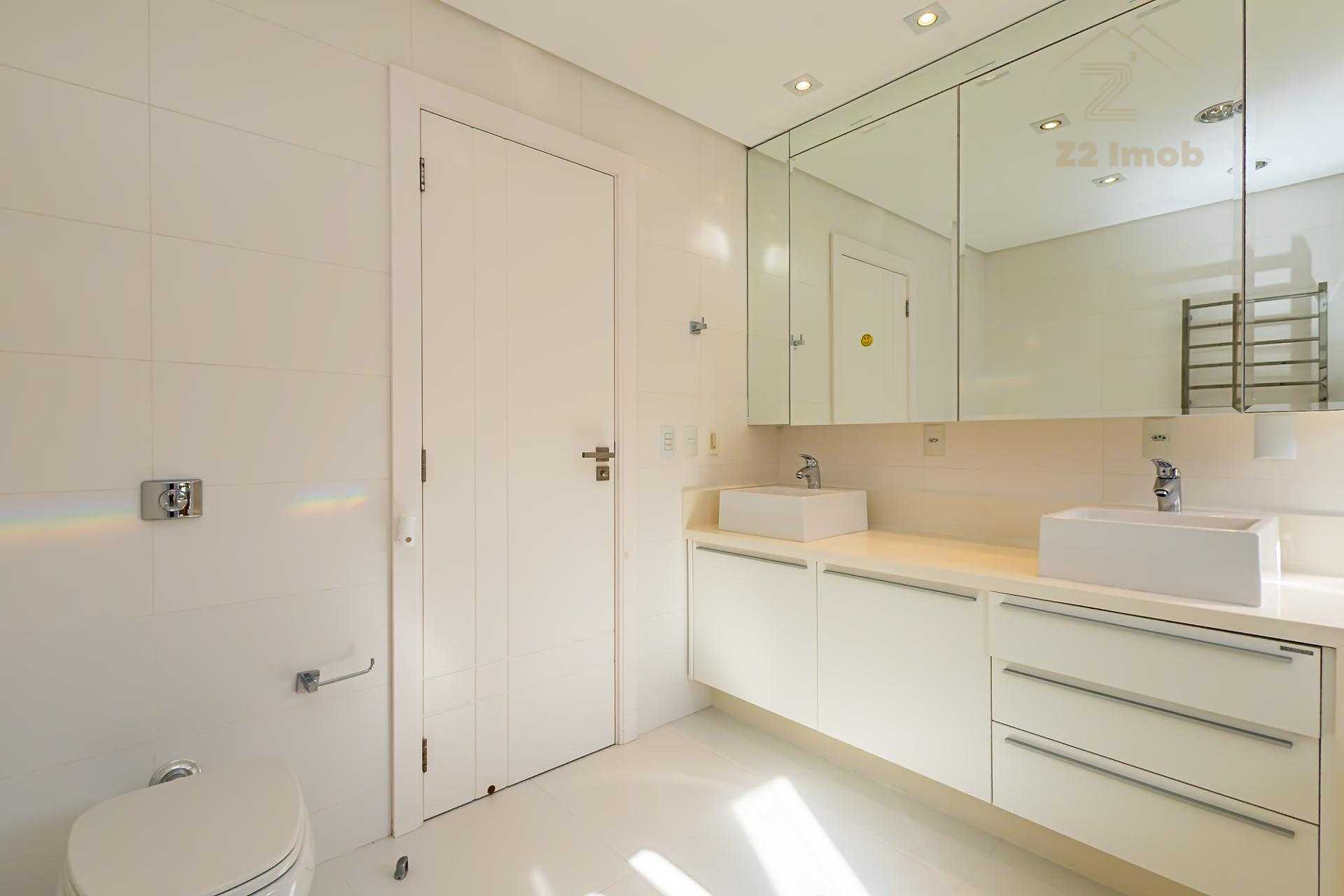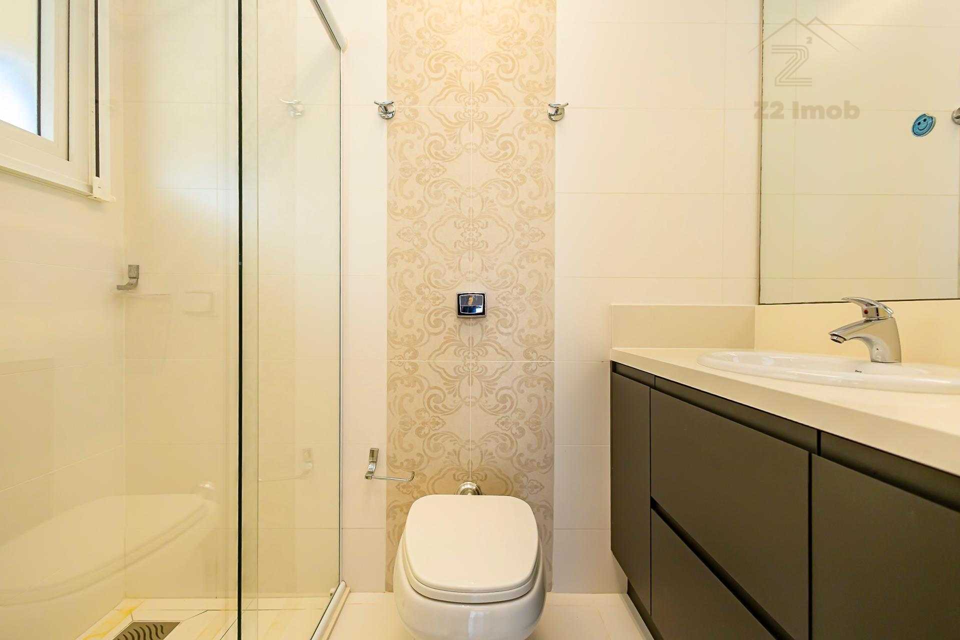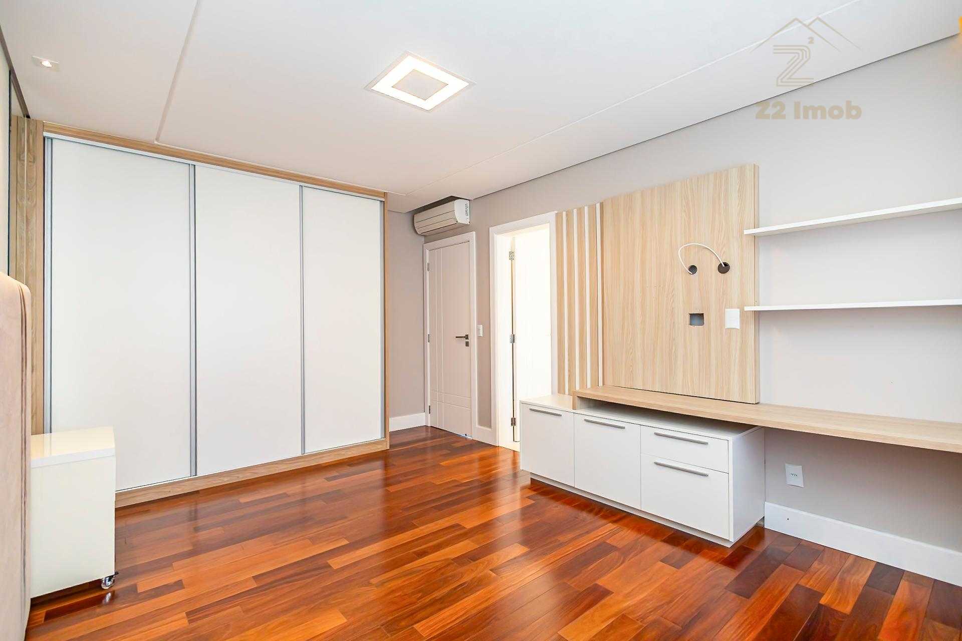 Ainda no térreo, há um lavabo e um dormitório climatizado, versátil para home office ou hóspedes.