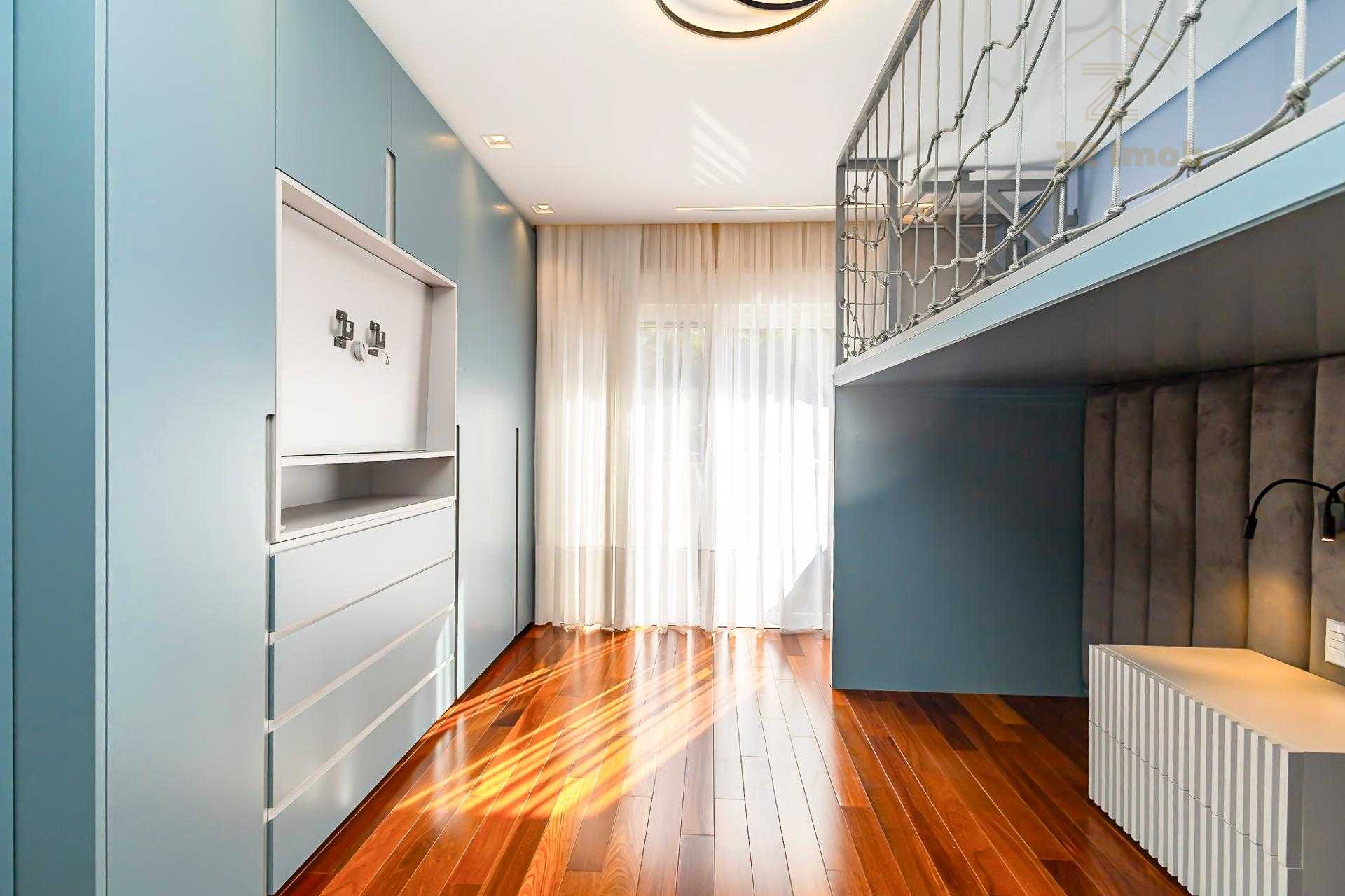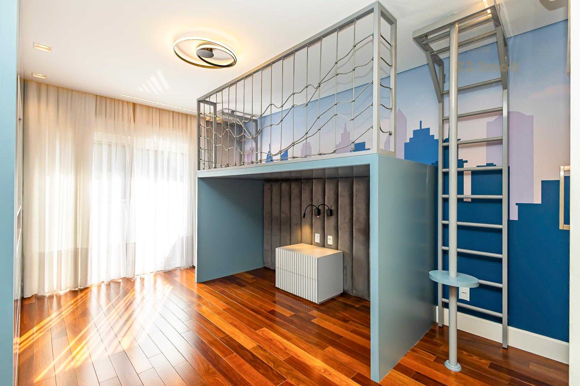No piso superior, encontram-se 4 amplas suítes, todas climatizadas. A suíte master oferece closet e banheiro com pias e duchas duplas. O mezanino, com sua charmosa lareira, torna-se um ambiente íntimo perfeito para relaxar, com vista para o verde.