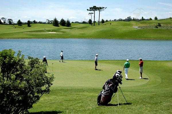 Campo de golfe profissional com 18 buracos, considerado um dos melhores do Brasil