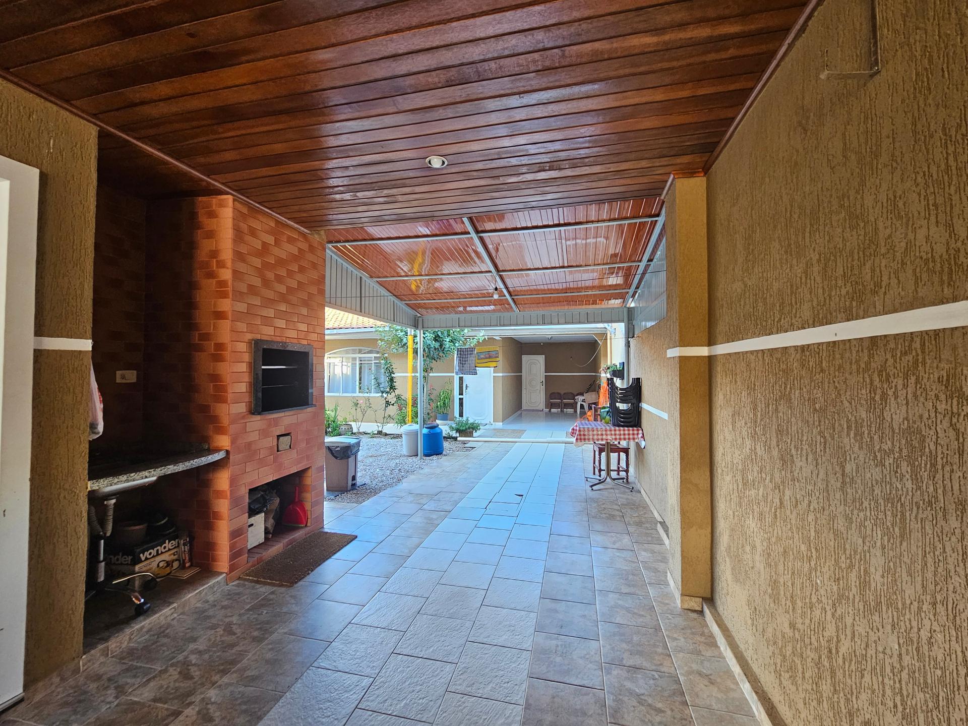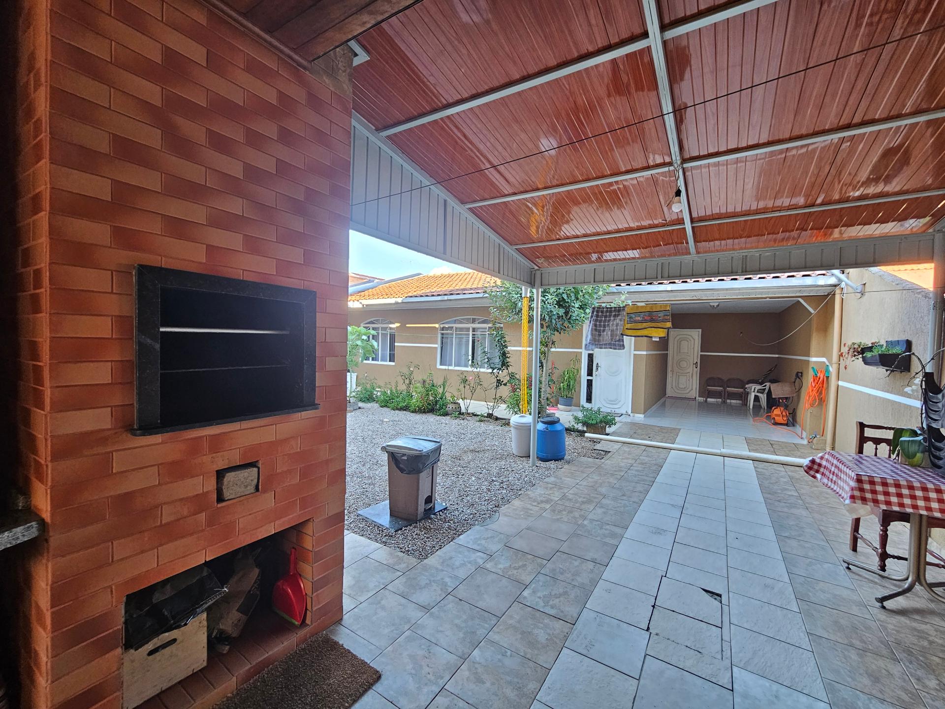 Churrasqueira anexa a garagem e cozinha em área coberta, facilitando a integração com o espaço externo e cozinha.