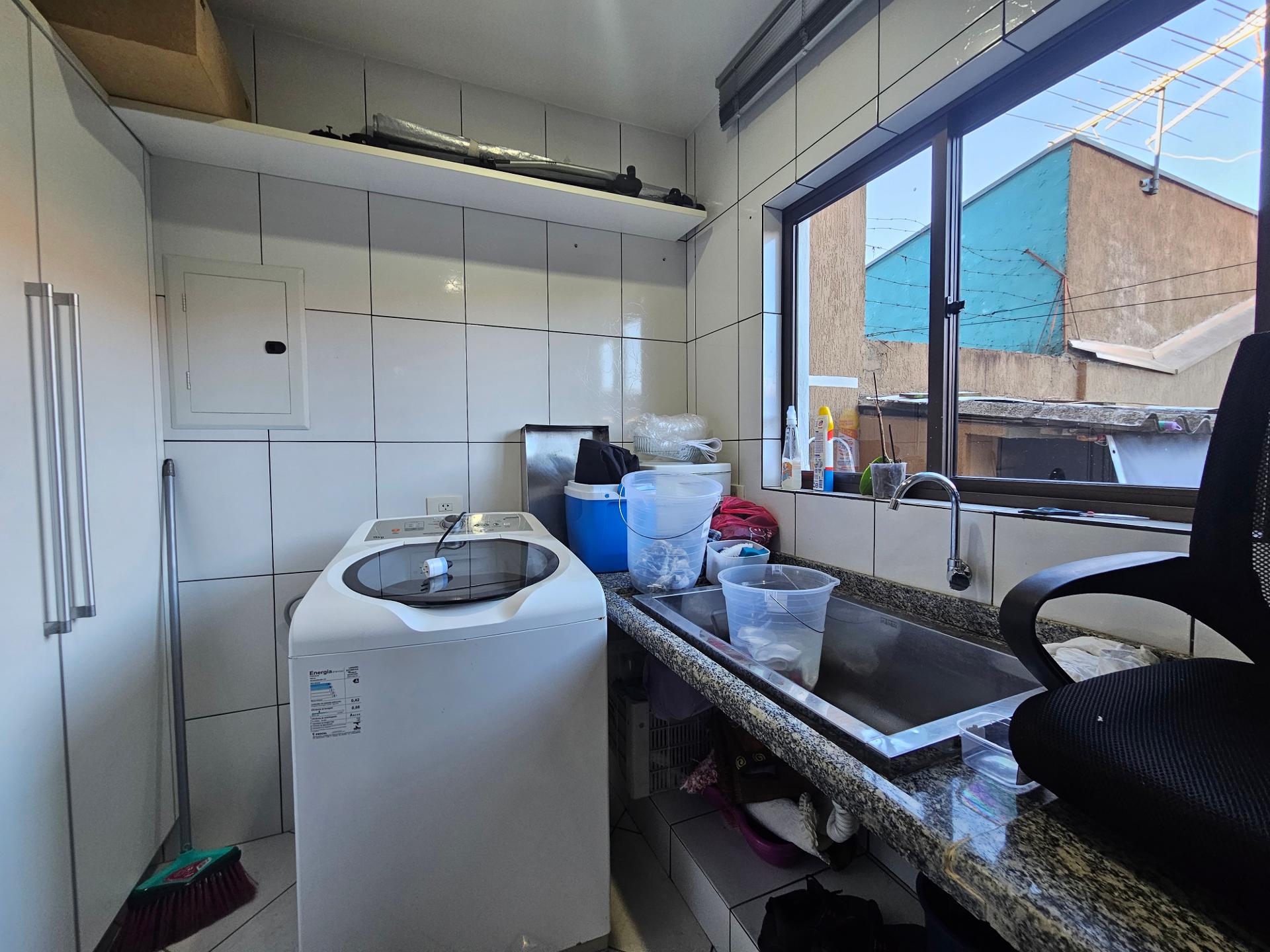 Cozinha bem iluminada e espaçosa, e área de serviço com acesso para os fundos