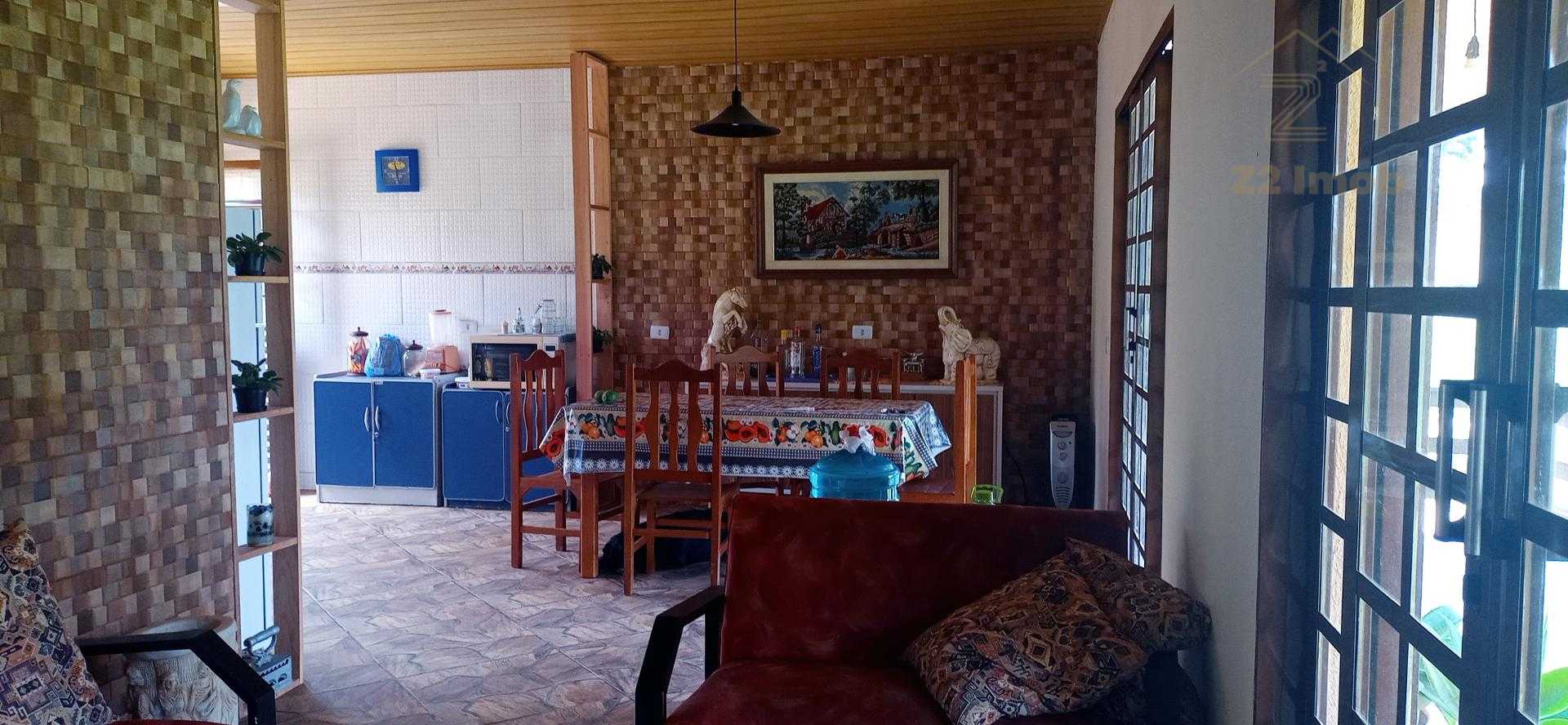 Casa principal: 115m², 2 quartos (sendo 1 suíte), sala, cozinha, banheiro social, varanda, garagem coberta para 2 carros e área de serviço.