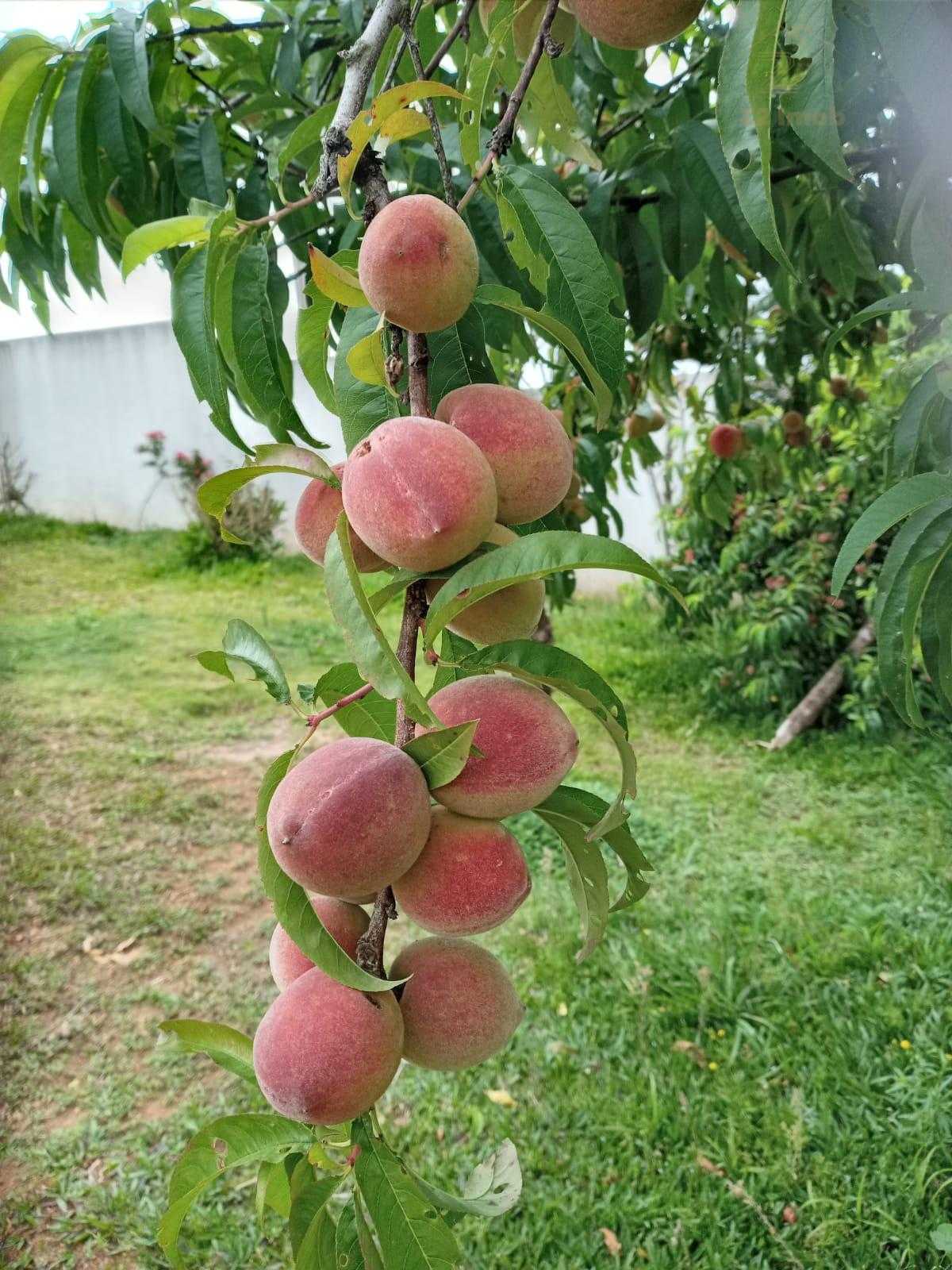 Pomar em plena produção, com diversas espécies de frutas, pronto para colher e desfrutar.