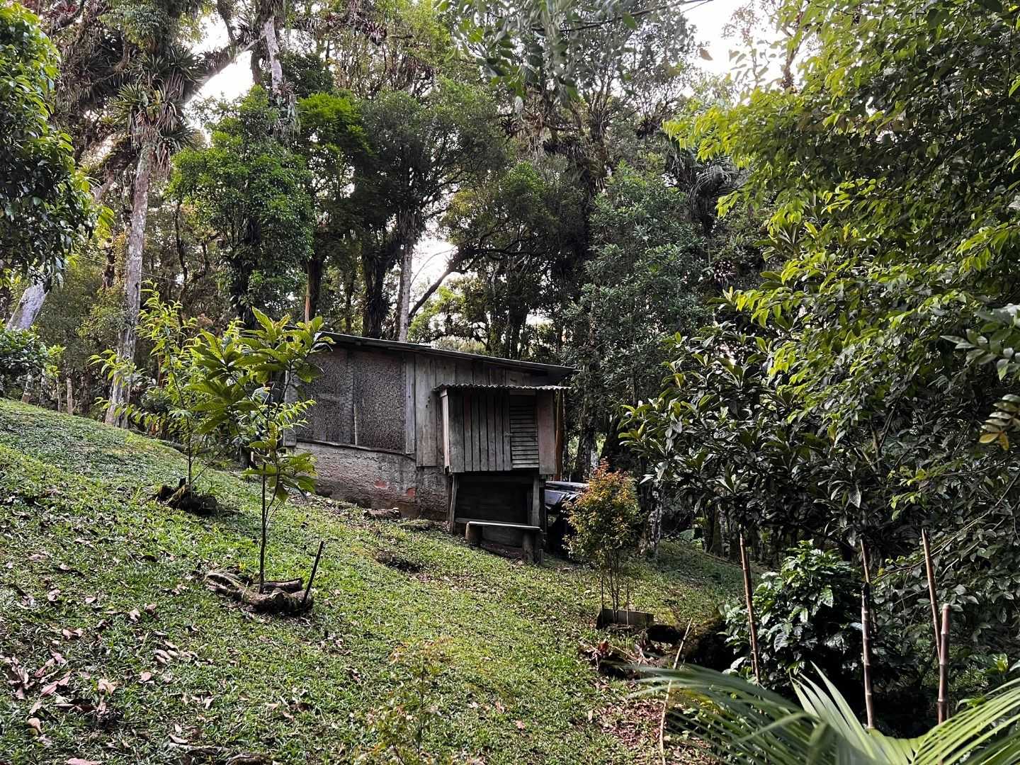 Estrutura rural: galinheiro, potreiro, horta, pasto e amplo bosque.
