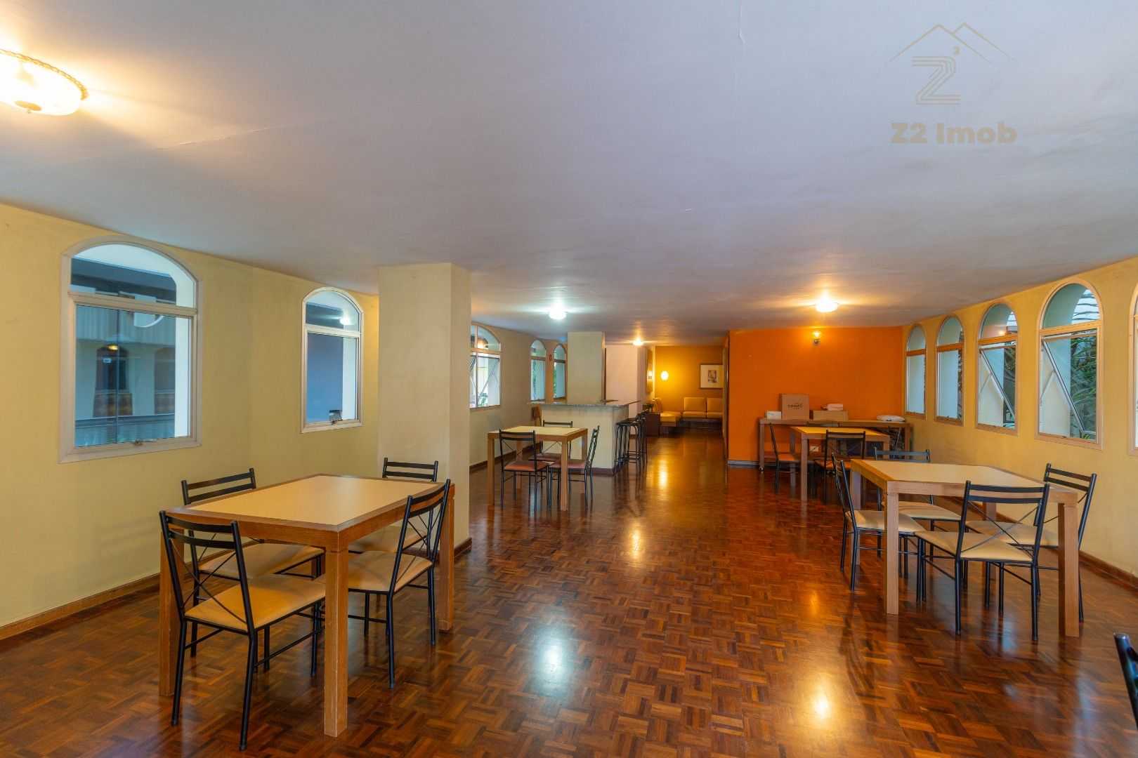 2 salas com sofás, sala de jantar, sauna, churrasqueira e cozinha adicional.