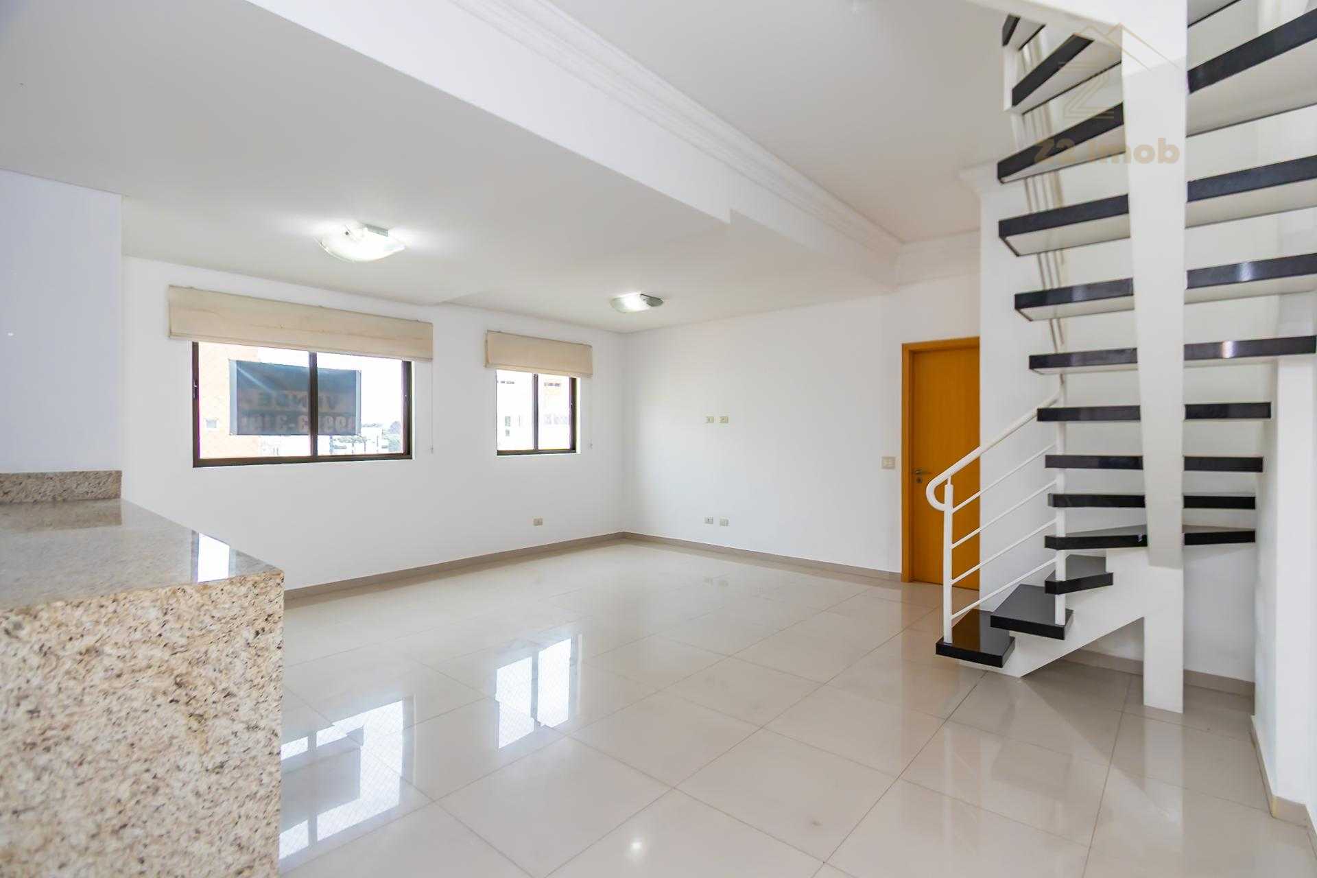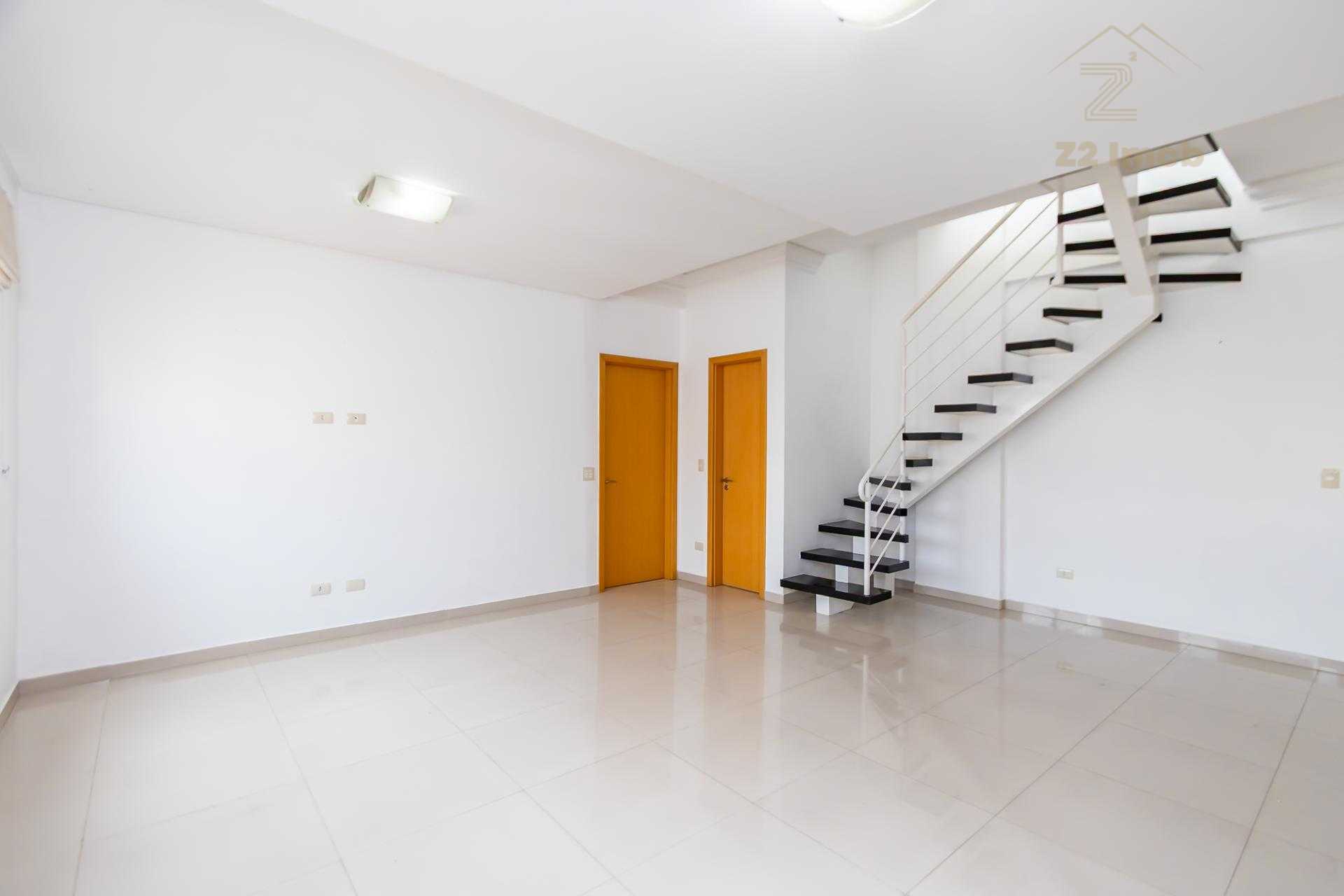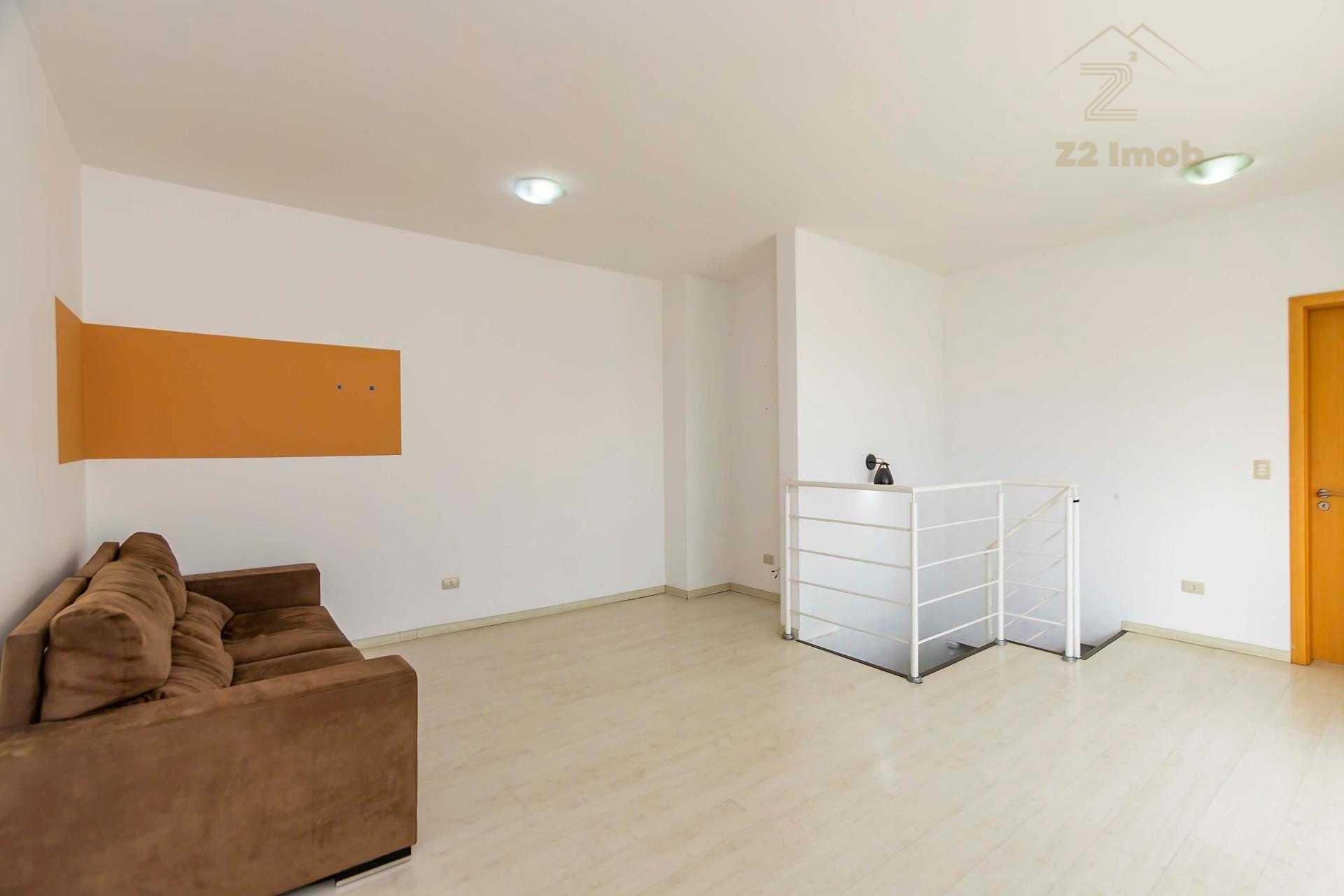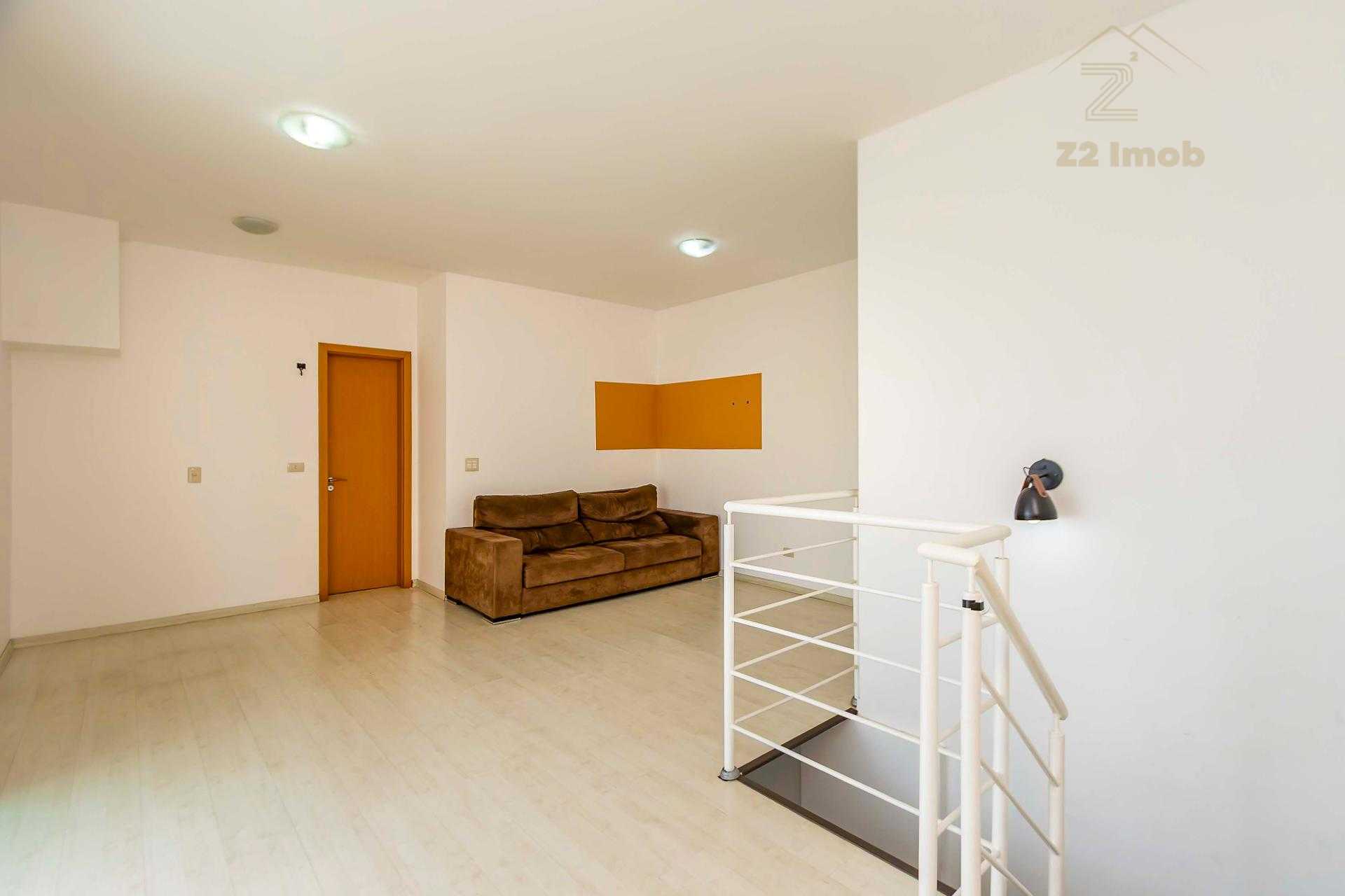 Duplex om 2 dormitórios, sendo a suíte (com amplo closet) no pavimento inferior, e o segundo quarto (que pode ser um Office) no pavimento superior.