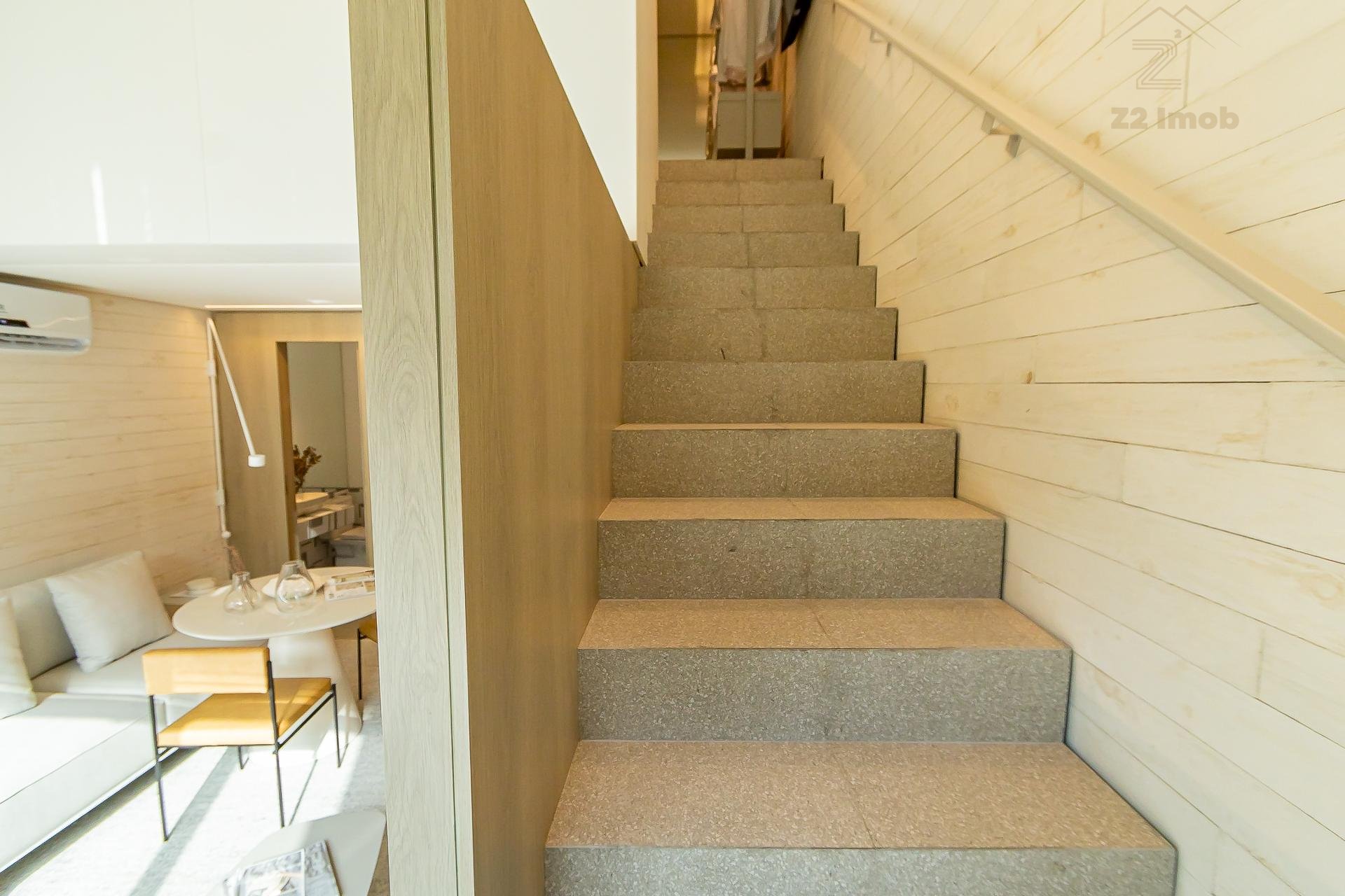 Trata-se de um Loft CALMO e ACOLHEDOR, com uma varanda avantajada,
