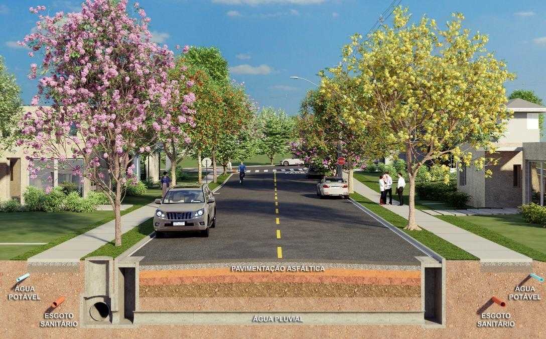 O loteamento conta com redes completas de água e esgoto, rede elétrica e iluminação pública, drenagem pluvial eficiente, além de vias asfaltadas e arborizadas, que proporcionam mais mobilidade, organização urbana e bem-estar no dia a dia. O projeto paisagístico integrado valoriza o entorno e cria um ambiente agradável, moderno e harmonioso.