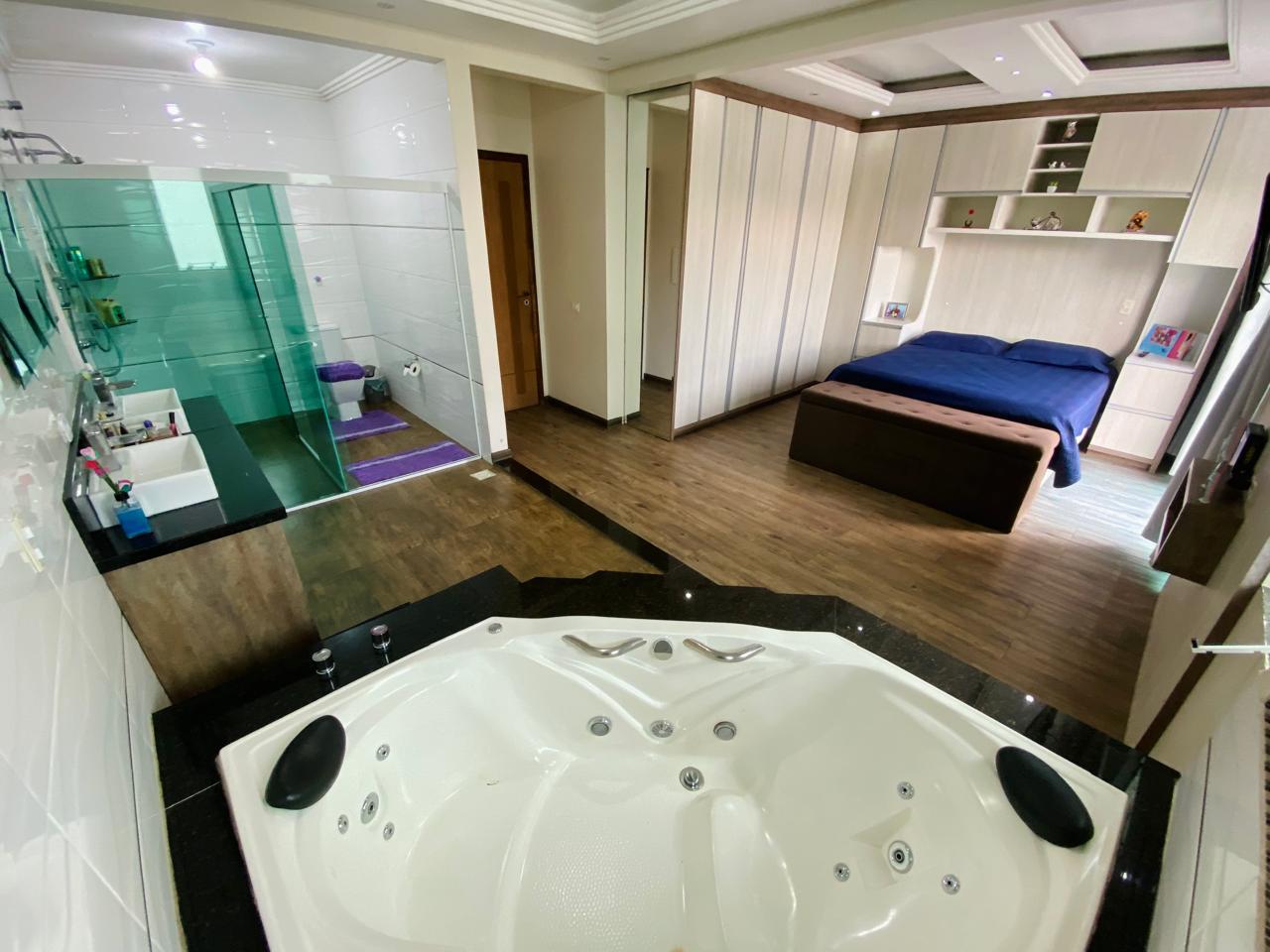Suíte master de 35 m², espaçosa e elegante, equipada com banheira, perfeita para relaxar após um longo dia.