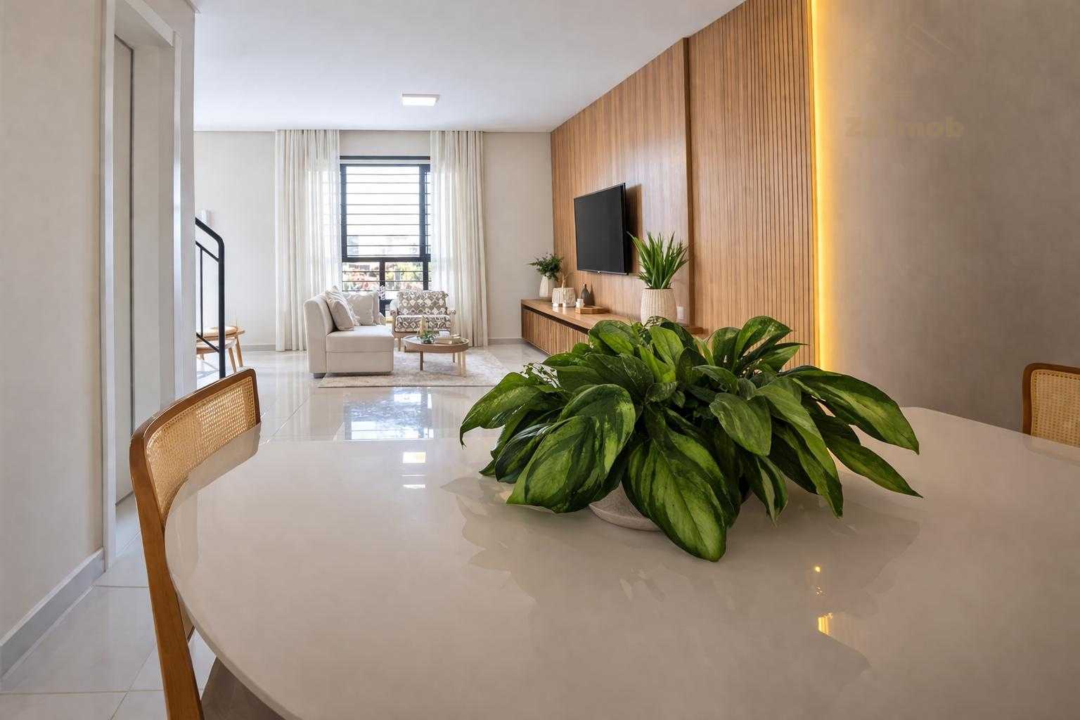 Sala ampla para dois ambientes, integrando estar e jantar, ideal para momentos de convivência com a família ou para receber visitas com conforto