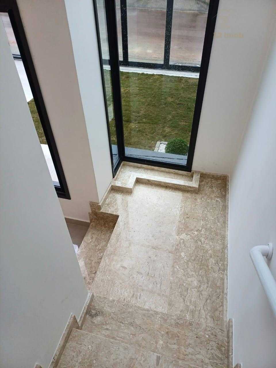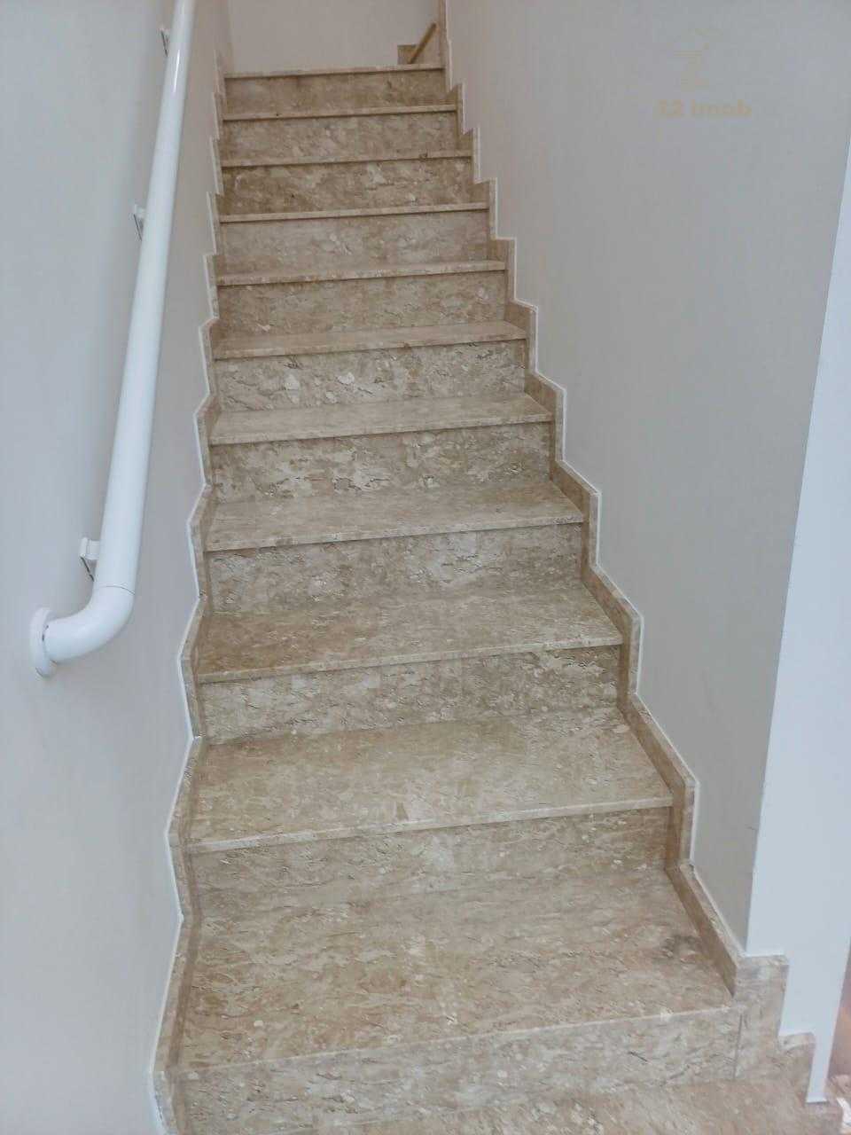 - Escada confortável com patamar, em granito