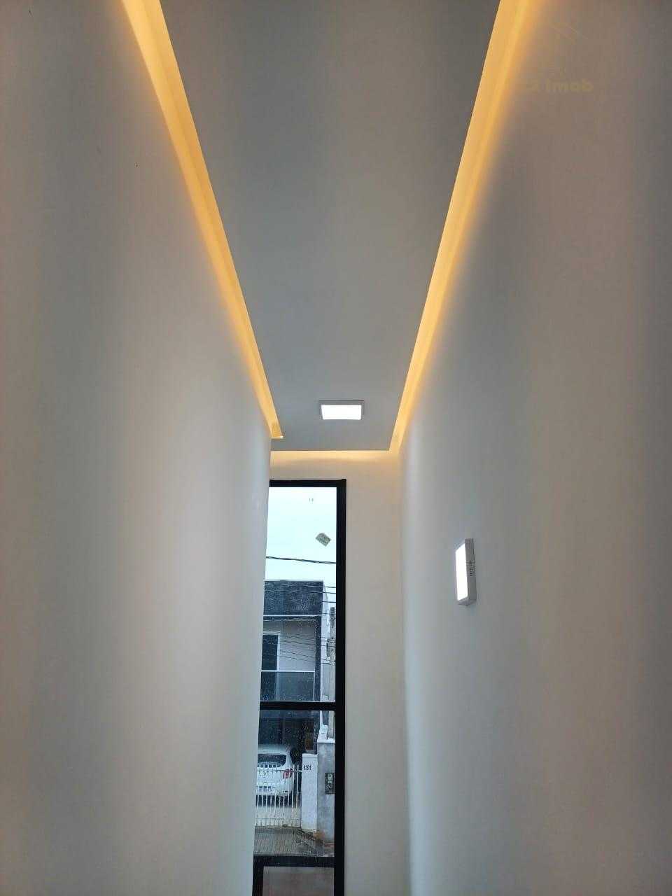 - Sala de estar, jantar e cozinha integradas com acabamento em gesso e iluminação embutida