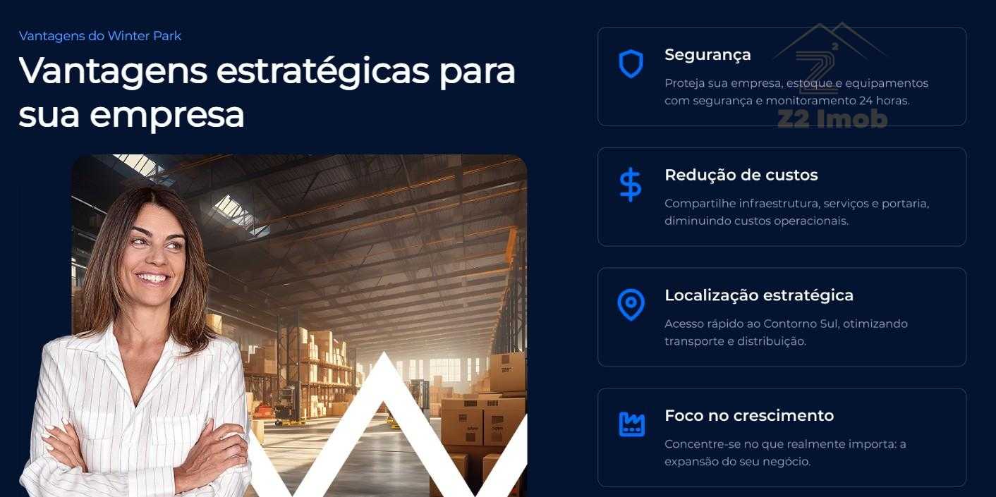 Localizado na Rua Vicente Micheloto, nº 4630, na Cidade Industrial de Curitiba, o Winter Park Empresarial oferece fácil acesso às principais vias da cidade e corredores logísticos, facilitando o deslocamento de cargas, colaboradores e fornecedores. O zoneamento ZS 1.1 permite Indústrias Tipo 1 e Tipo 2, com altura máxima de galpões de até 15 metros e capacidade de tráfego de até 17 toneladas por eixo, atendendo plenamente operações que demandam circulação de veículos pesados.