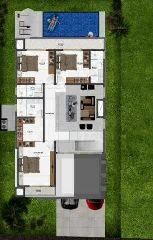 Incluso na negociação um projeto completo, já aprovado na prefeitura e no condomínio, de uma casa moderna de alto padrão de 257 m².